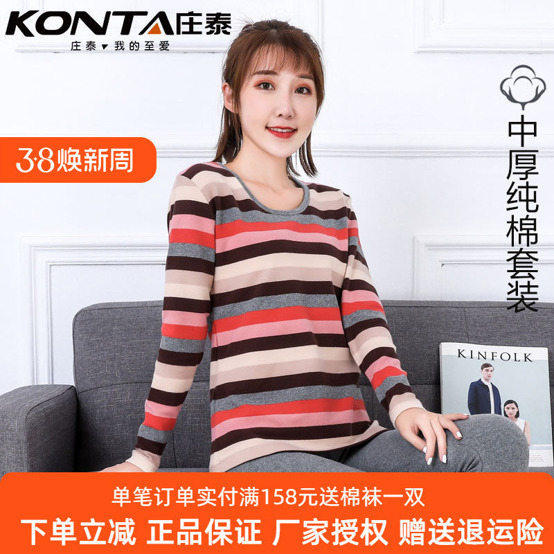 📚 庄泰女士内衣中厚舒绒纯棉保暖套装加厚秋衣秋裤圆领弹力修身青年