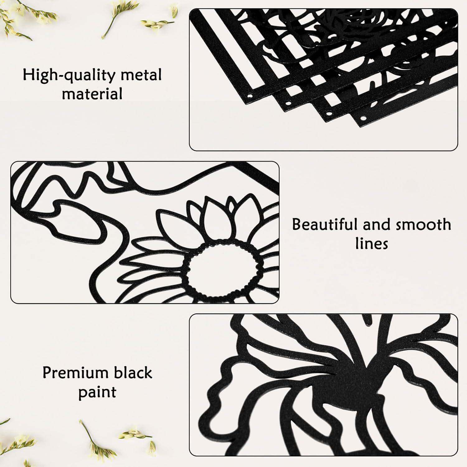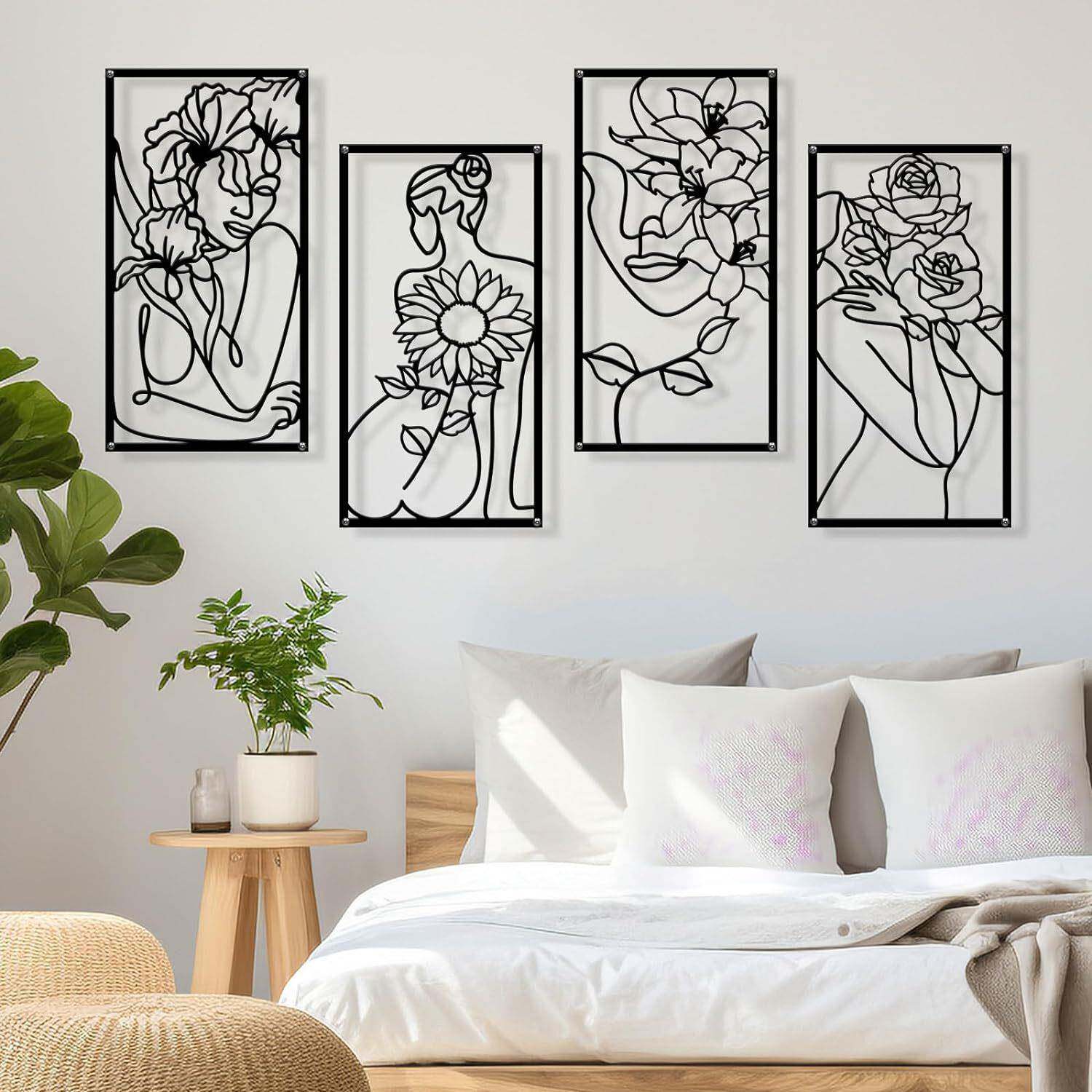 📚 4件金属极简主义抽象女人和花墙艺术单线绘画艺术装饰