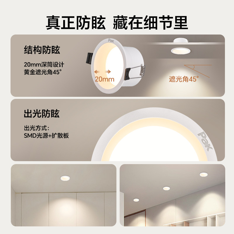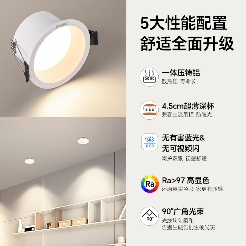 📚 三雄极光全光谱护眼筒灯嵌入式75mm家用深杯防眩光过道灯