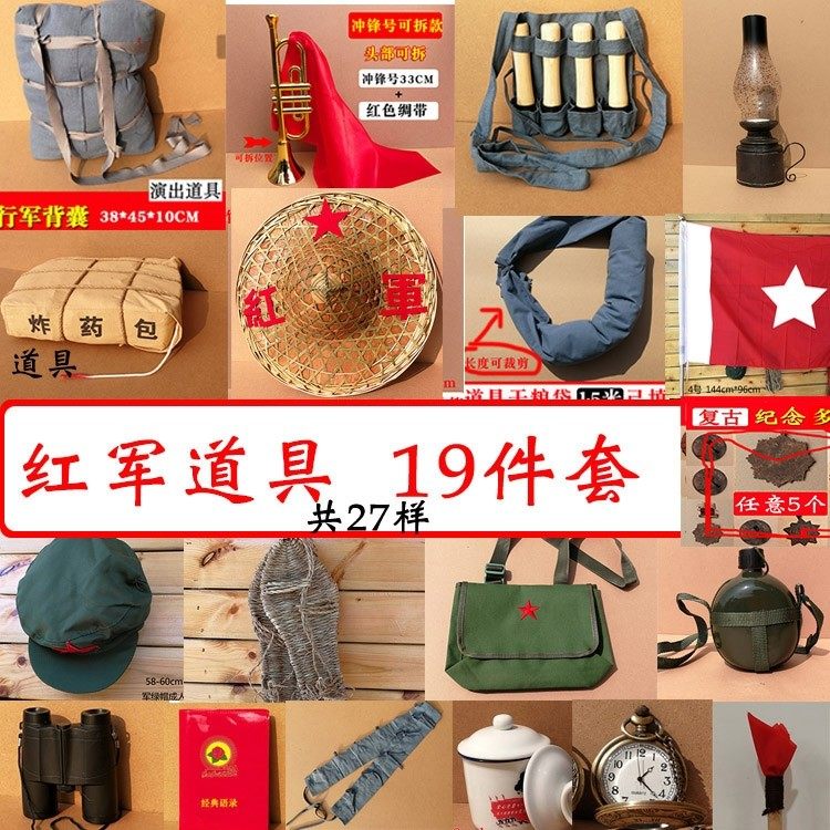 📚 红军演出道具书包道具旗展览做旧医药箱布鞋卫生员袖章旗子机枪