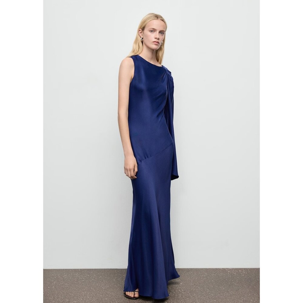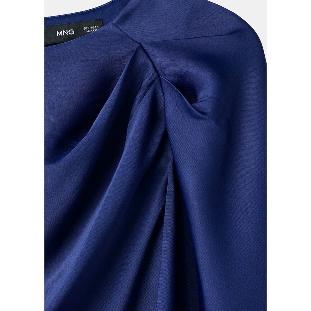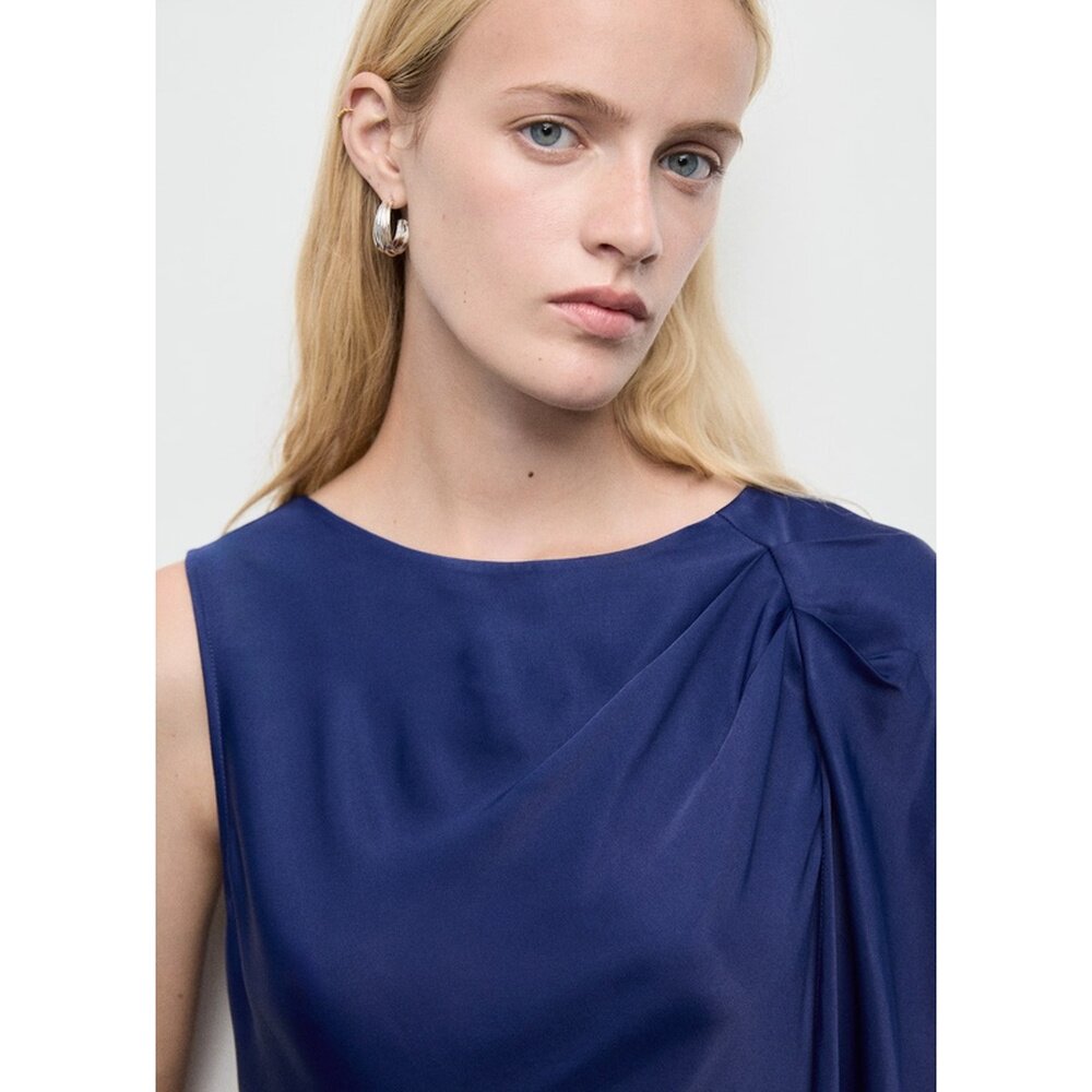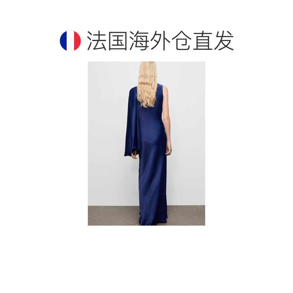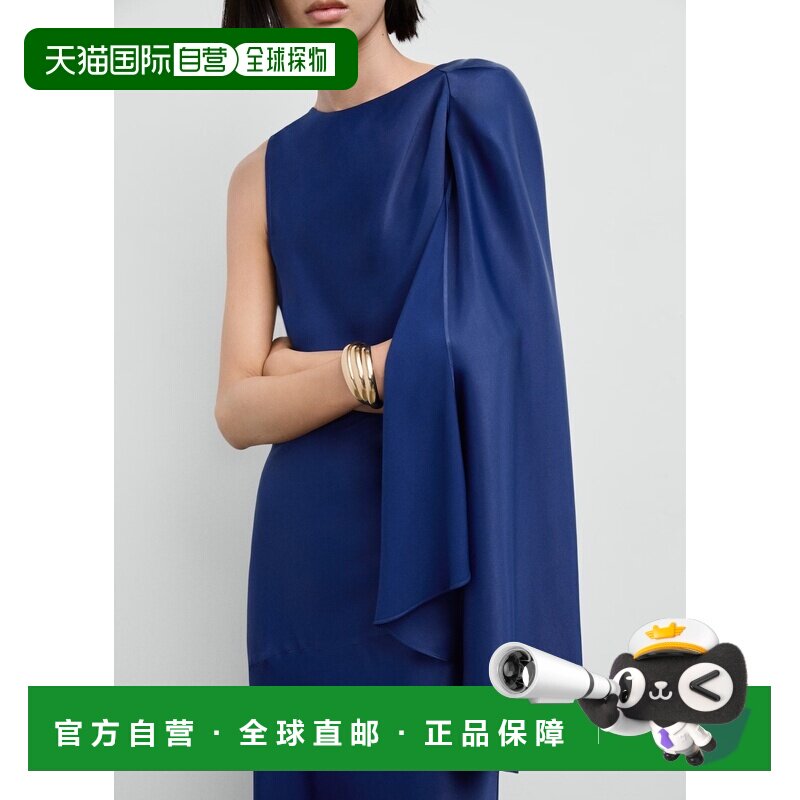 📚 自营欧洲直邮Mango芒果 女士海军蓝不对称缎面连衣裙