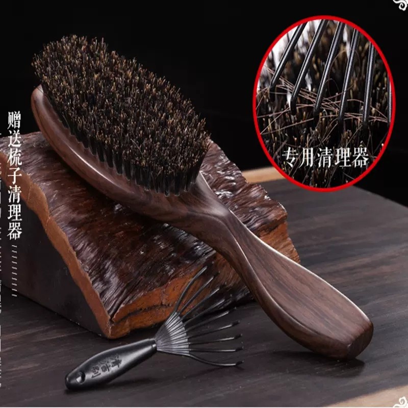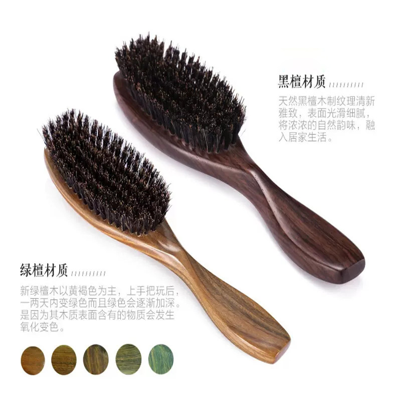 📚 黑檀木猪鬃毛梳子天然绿檀木梳发刷男女顺发直发头部猪鬃梳按摩梳