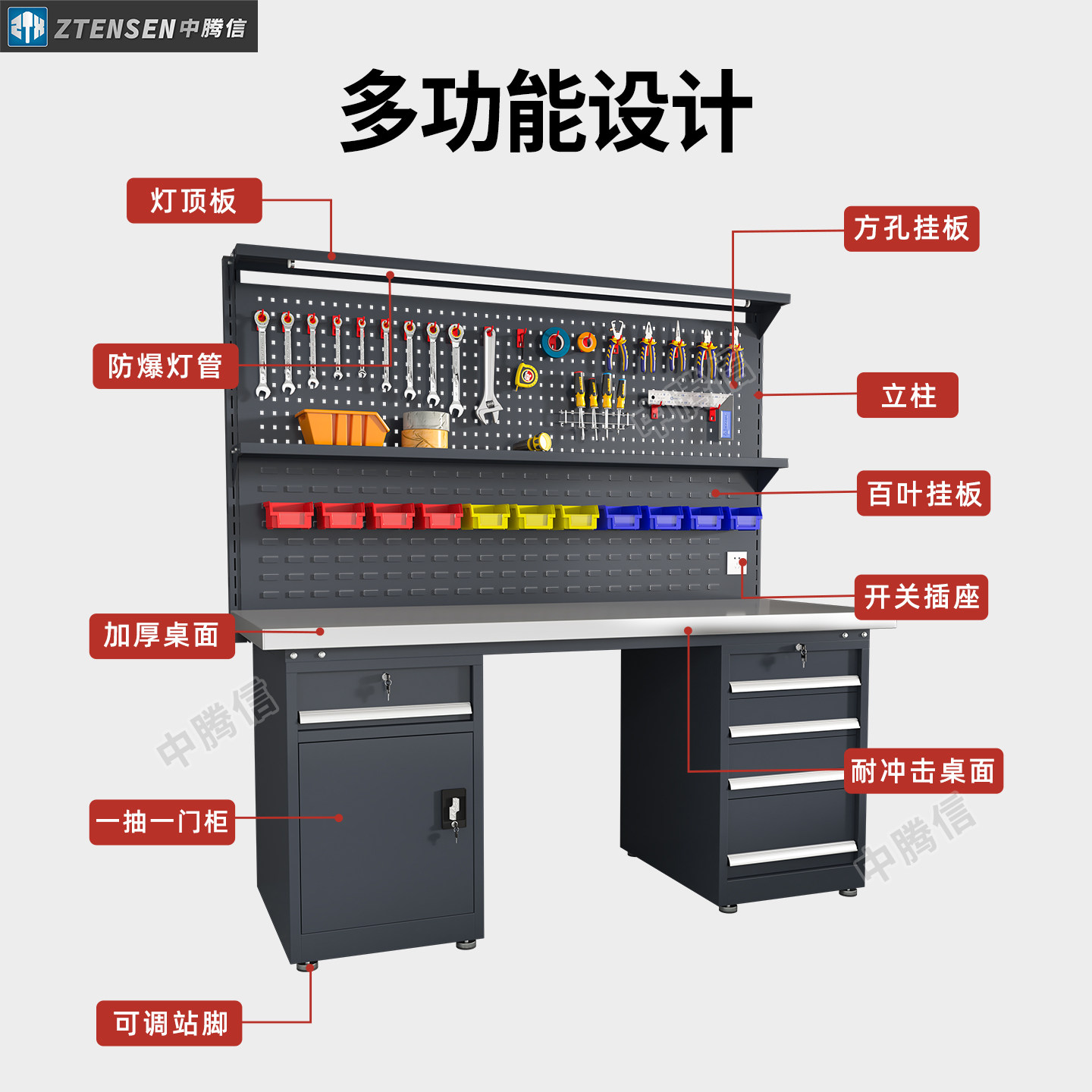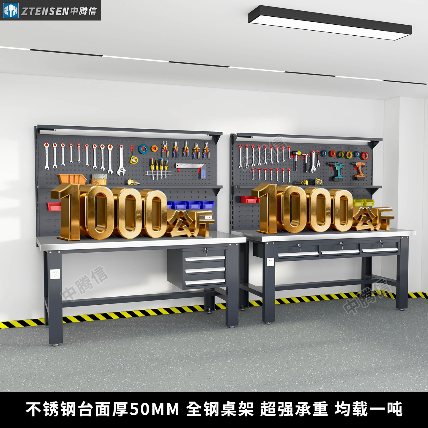 📚 中腾信不锈钢工作台工厂流水线操作台车间维修台检验桌重型钳工台
