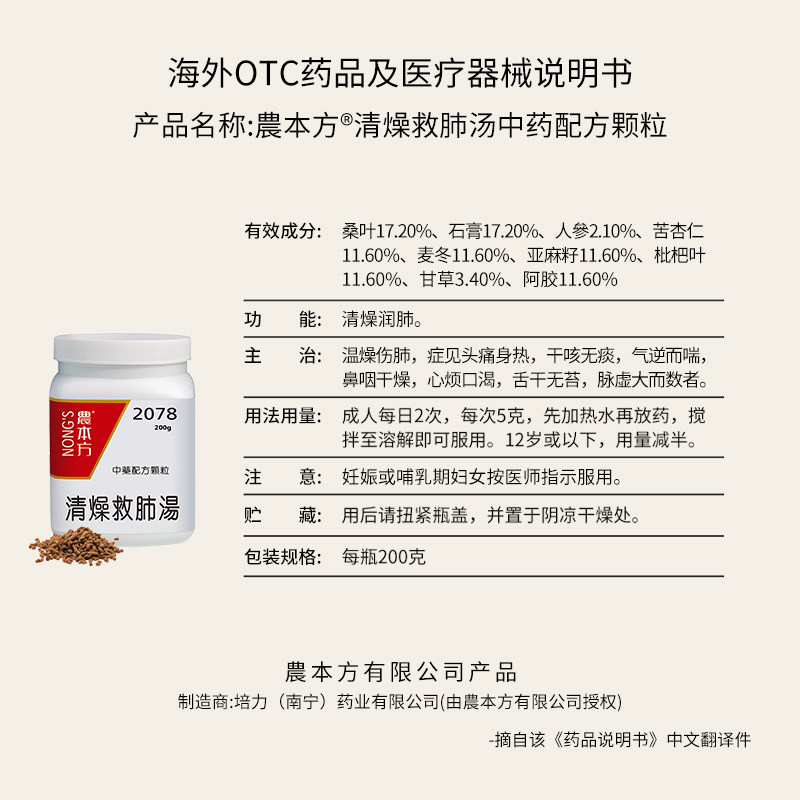 🍃香港农本方清燥救肺汤颗粒:润肺养阴,好喝到心坎里💖