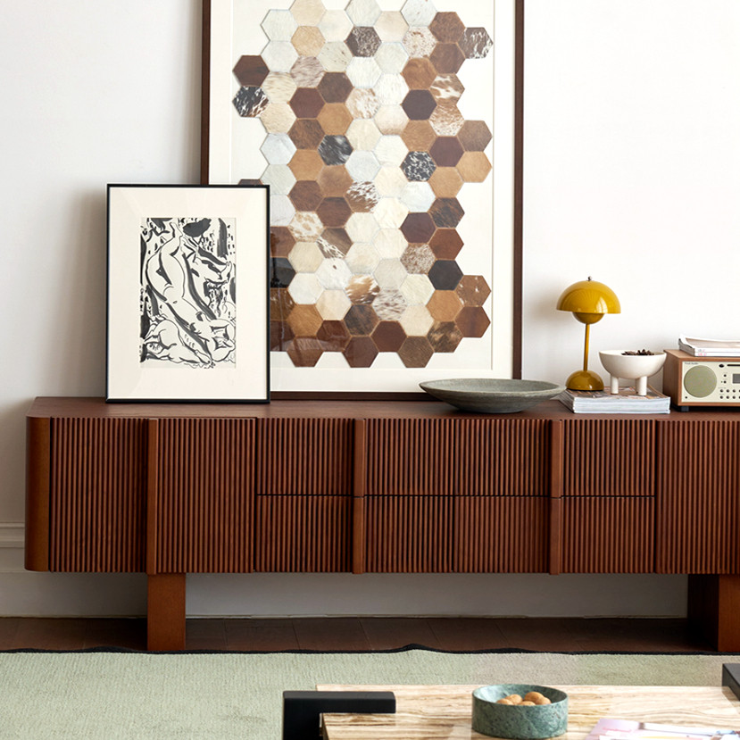 📚 意式中古电视柜现代简约客厅柚木色电视柜实木电视柜大小户电视柜