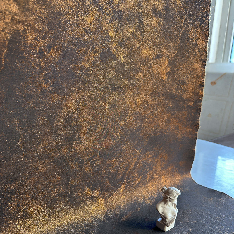 📚 复古金棕色斑驳墙布仿铁皮铁锈纹理深咖栗色棕红棕褐古铜无缝壁布
