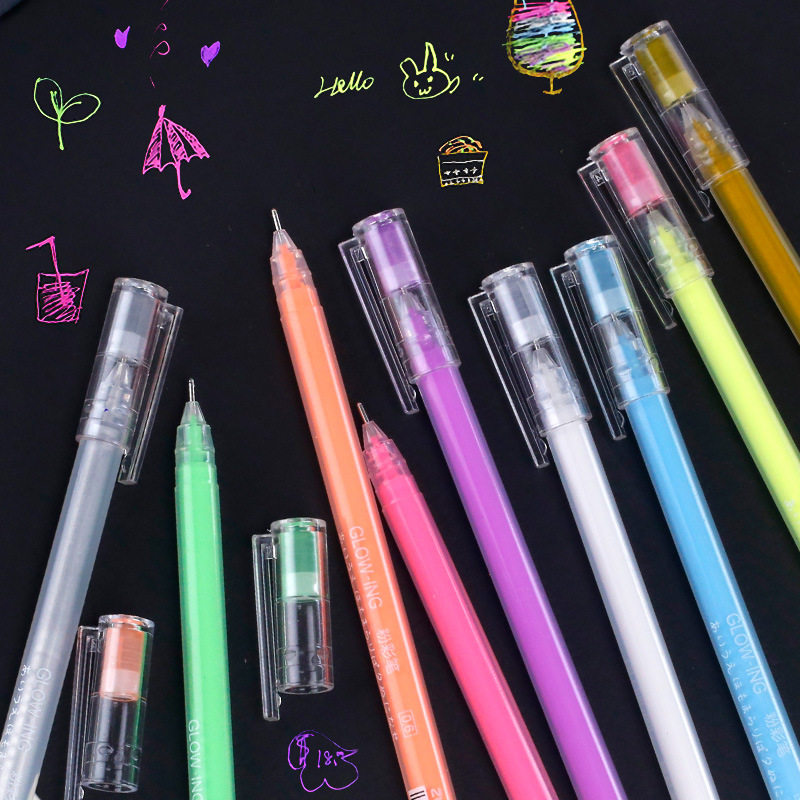 📚 24色极细相册DIY牛皮黑卡纸专用水粉高光粉彩荧光笔金银白色0.6mm