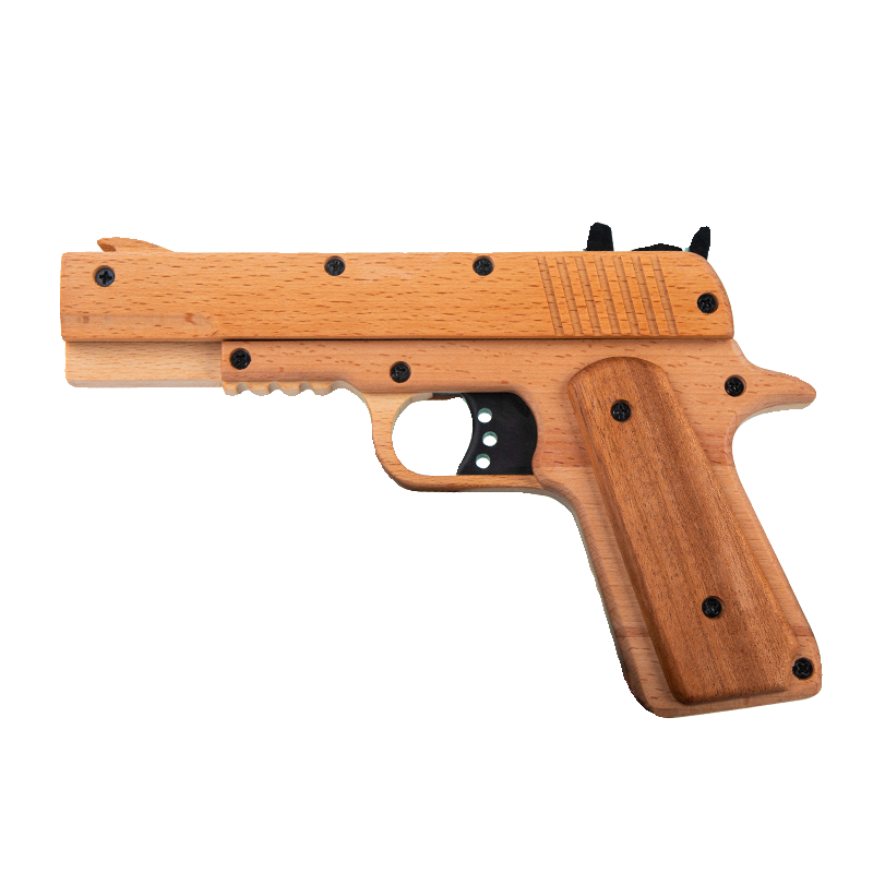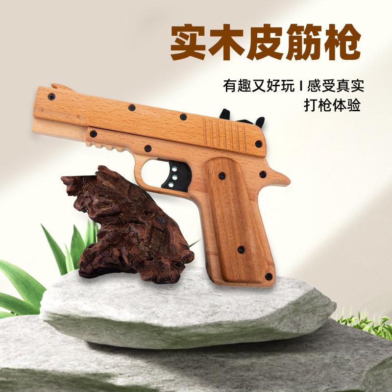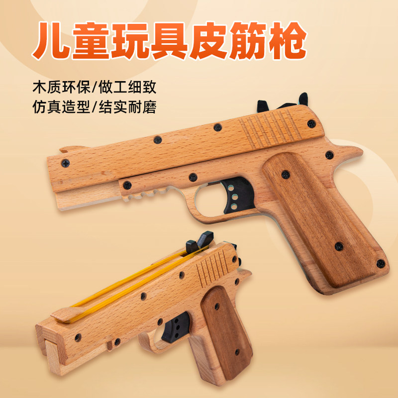 📚 新款1911实木连发反推可上膛打橡皮筋手枪儿童玩具枪发射软弹类