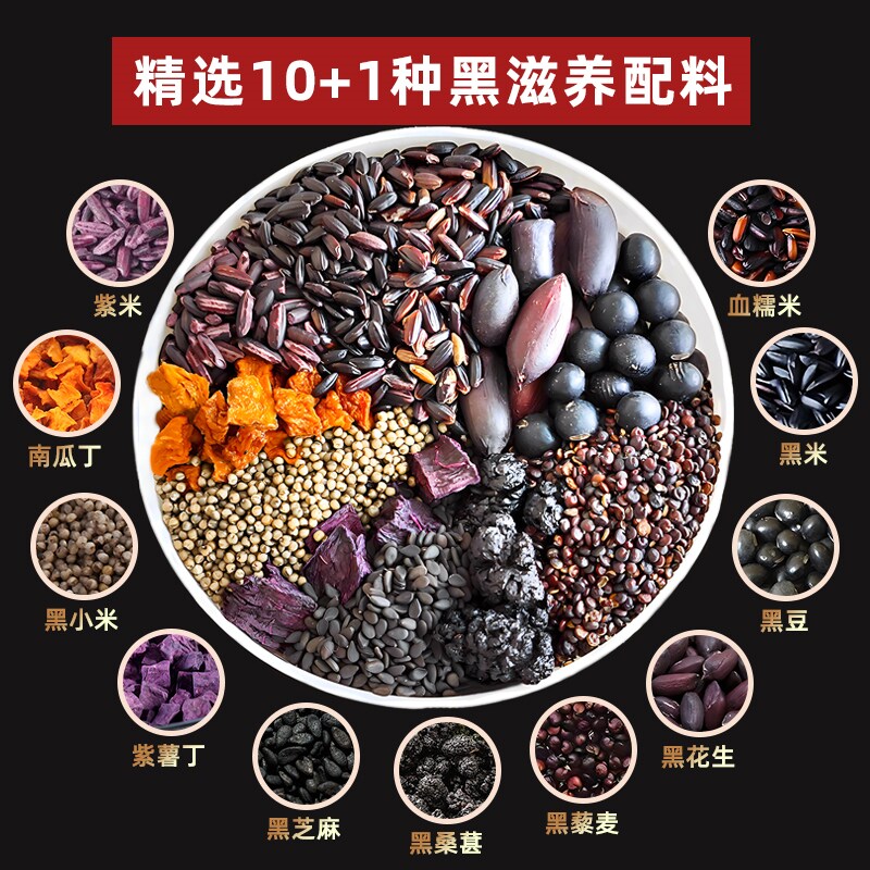 📚 巴颜喀拉五谷杂粮养生粥十黑滋养粥黑花生藜麦桑葚芝麻黑小米八宝