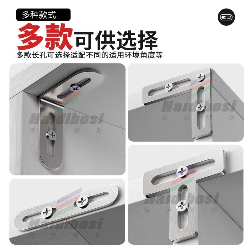 📚 不锈钢角码双头长孔可调节90度直角固定器L型T型平面角铁连接件