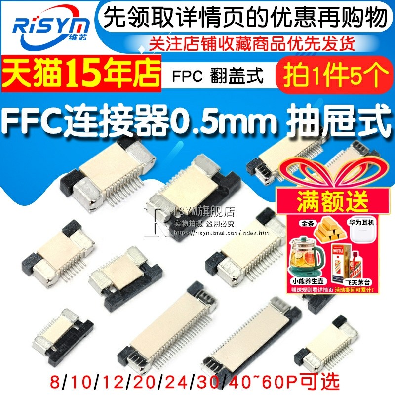 📚 FPC连接器FFC扁平电缆线插座0.5MM翻盖式上下接8/10/20/24/40~60P