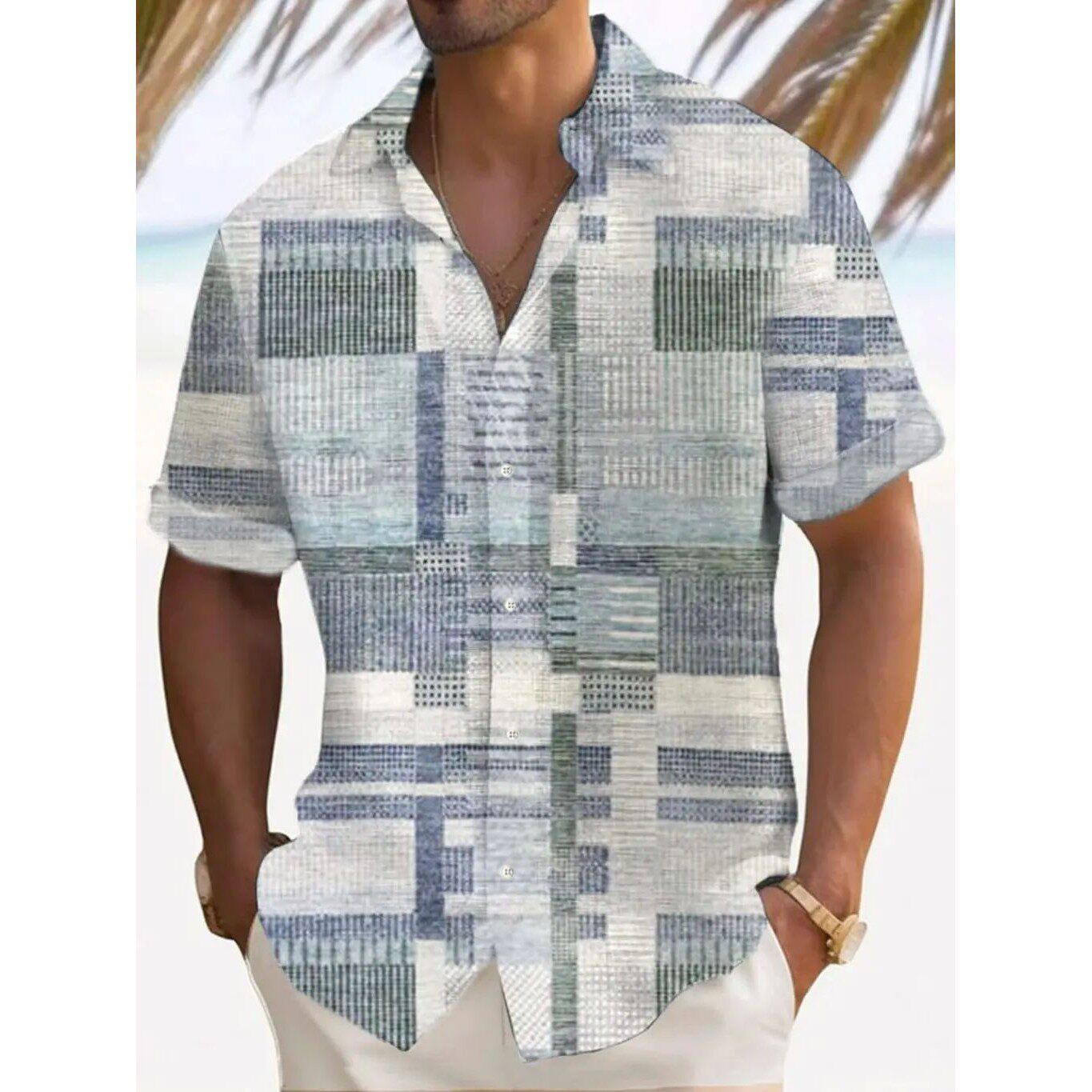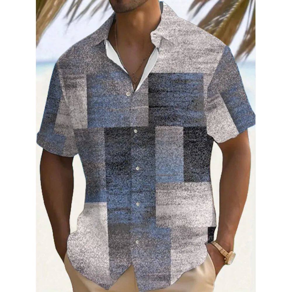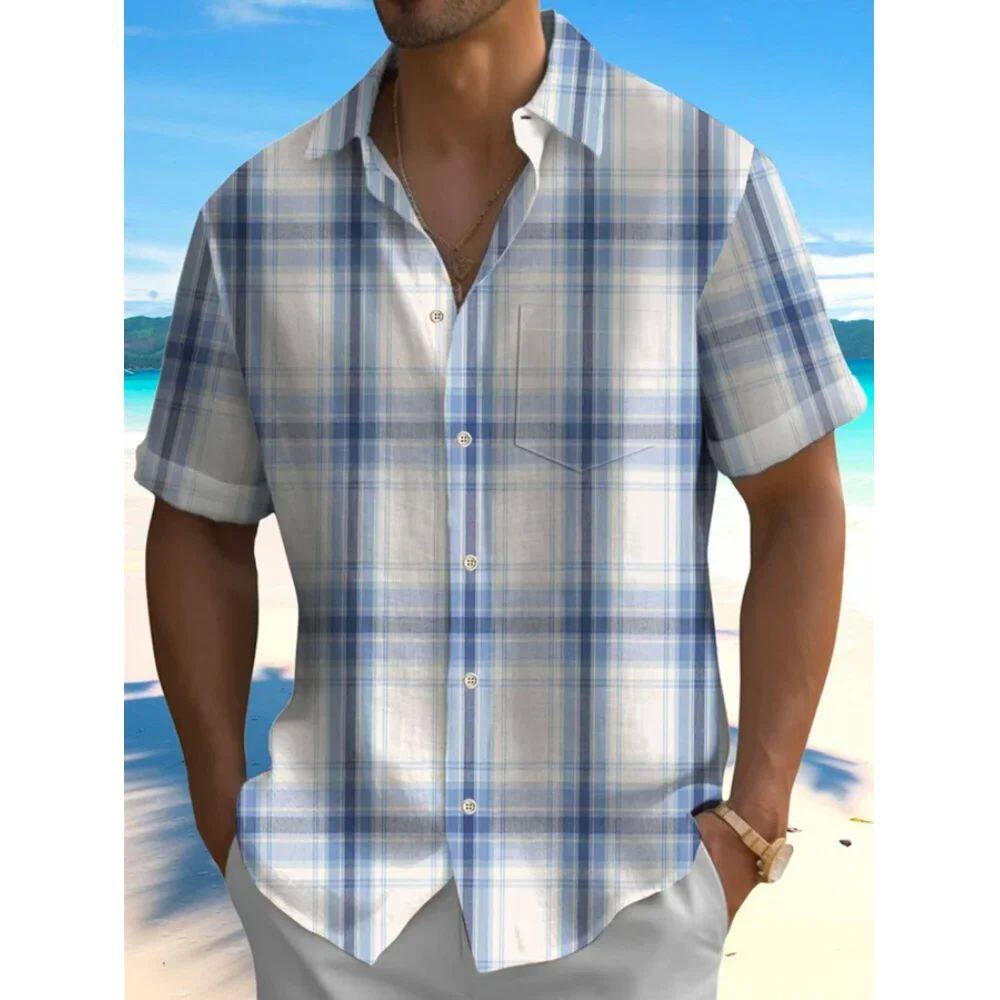 📚 3D digital printed beach plaid shirt3D数码印花沙滩格子衬衫男