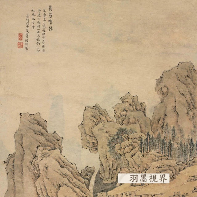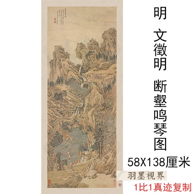 📚 明_文徵明_断壑鸣琴图古代书画高清宣纸微喷横幅仿真复制装饰画