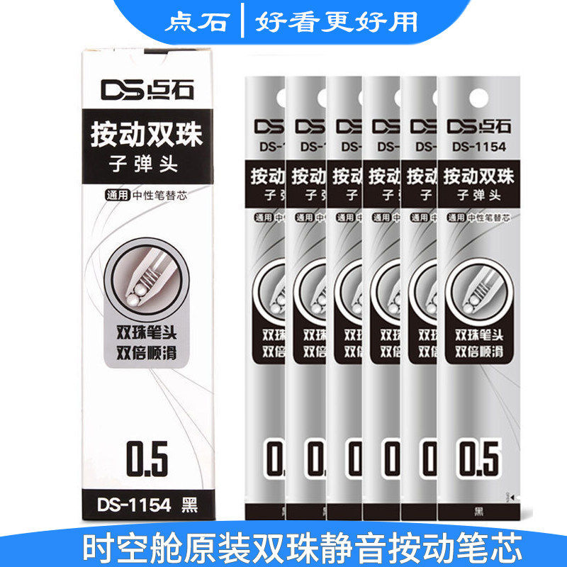 📚 点石制笔时空舱按动中性笔笔芯ds-1154速干双珠子弹头黑色0.5中性笔红蓝黑笔替换芯太空舱学生刷题水笔替芯