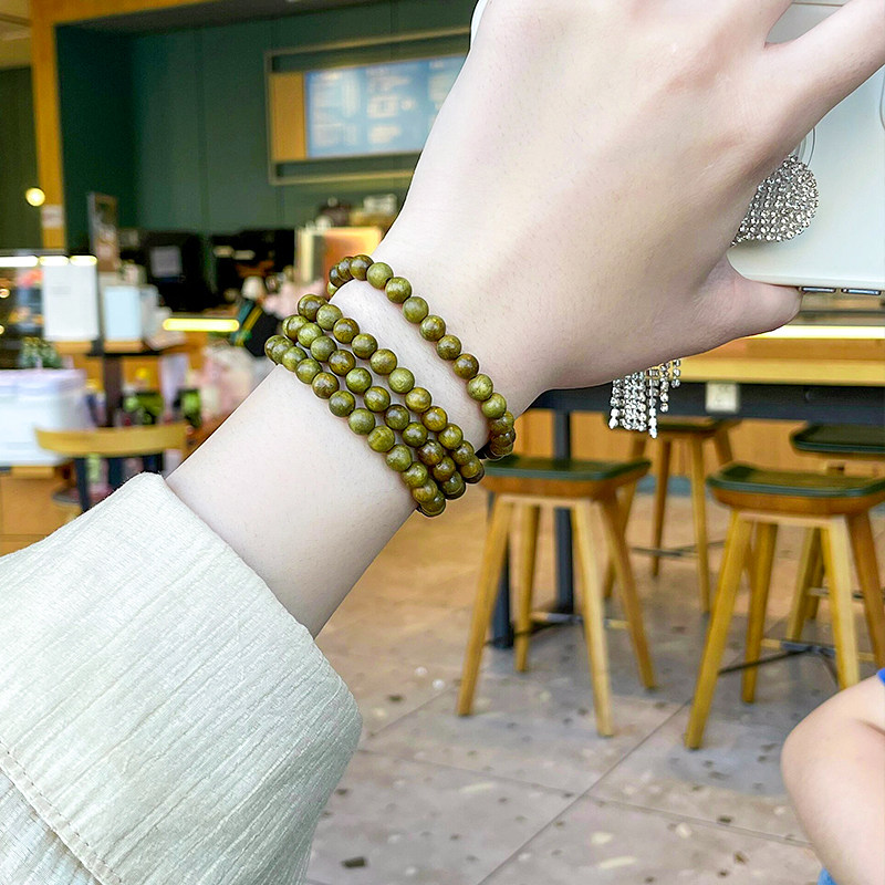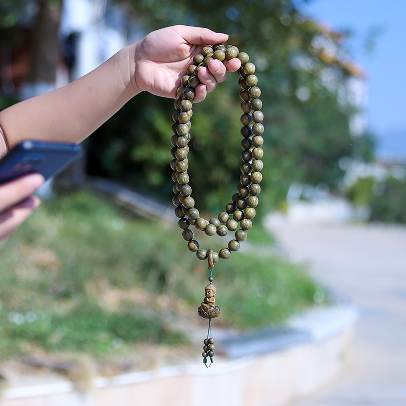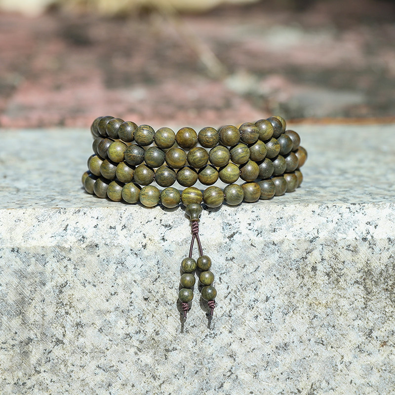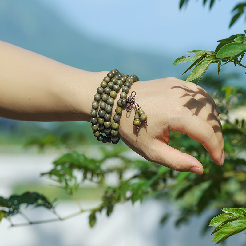 📚 绿檀木手串108颗佛珠檀木盘玩檀香男士盘珠转运珠项链4多圈女手链