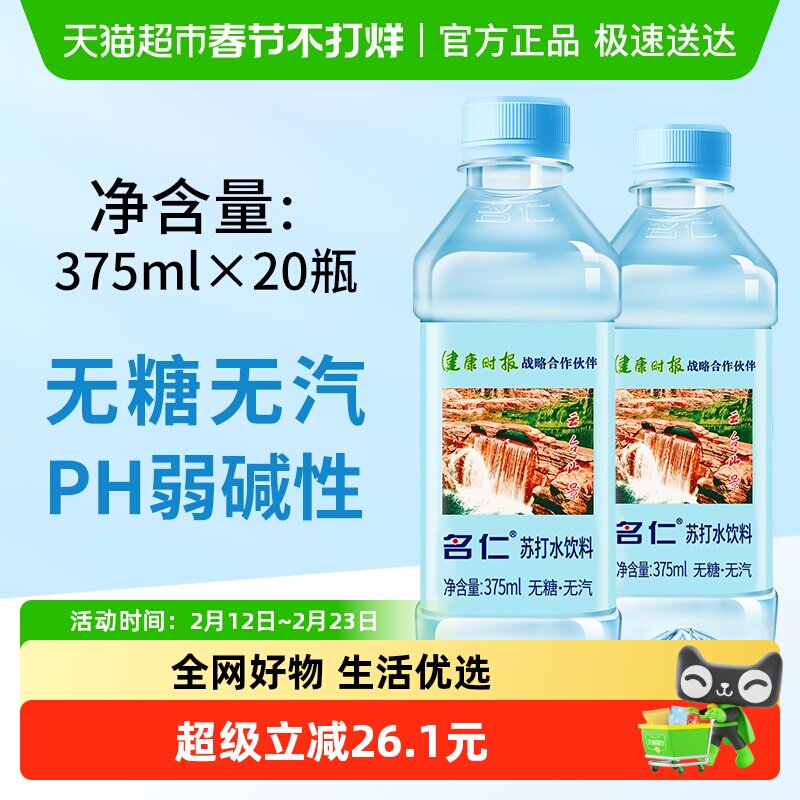 📚 名仁苏打水明仁苏打水碱性水无汽整箱苏打水饮料整箱