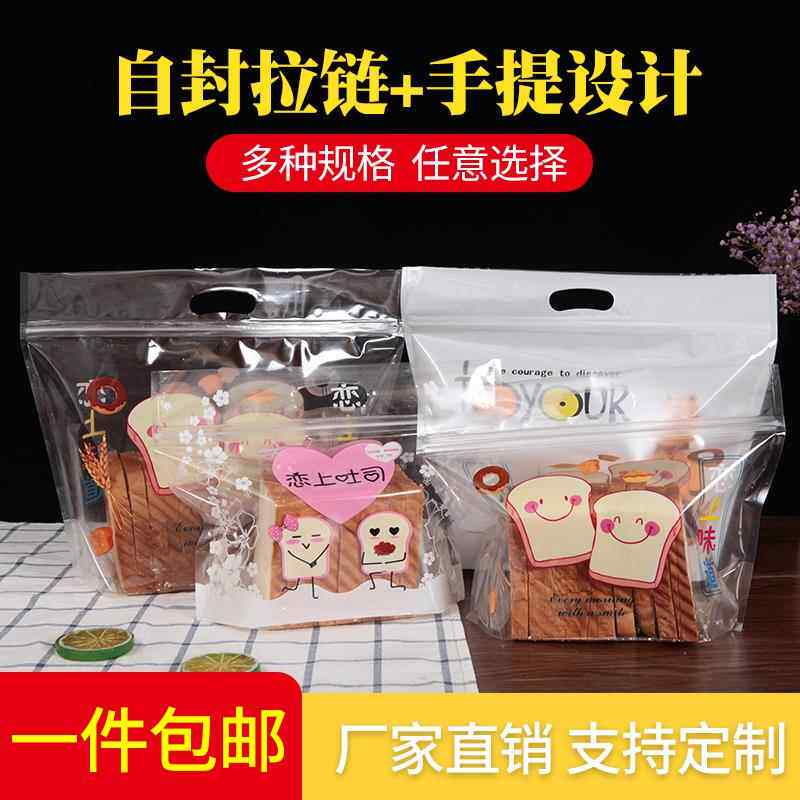 📚 吐司包装袋450g克自封口拉链袋烘焙面包袋子大小号手提透明糕点袋