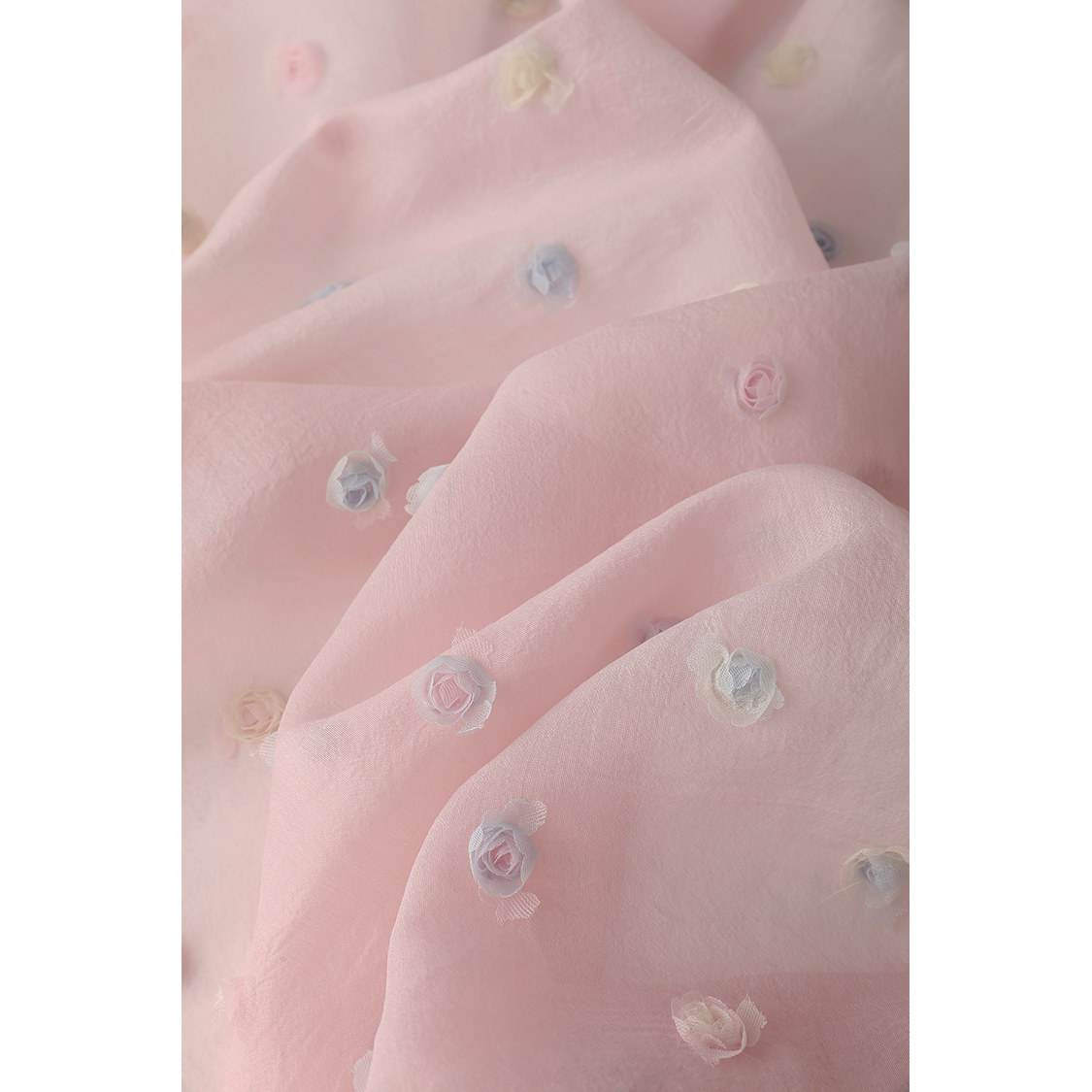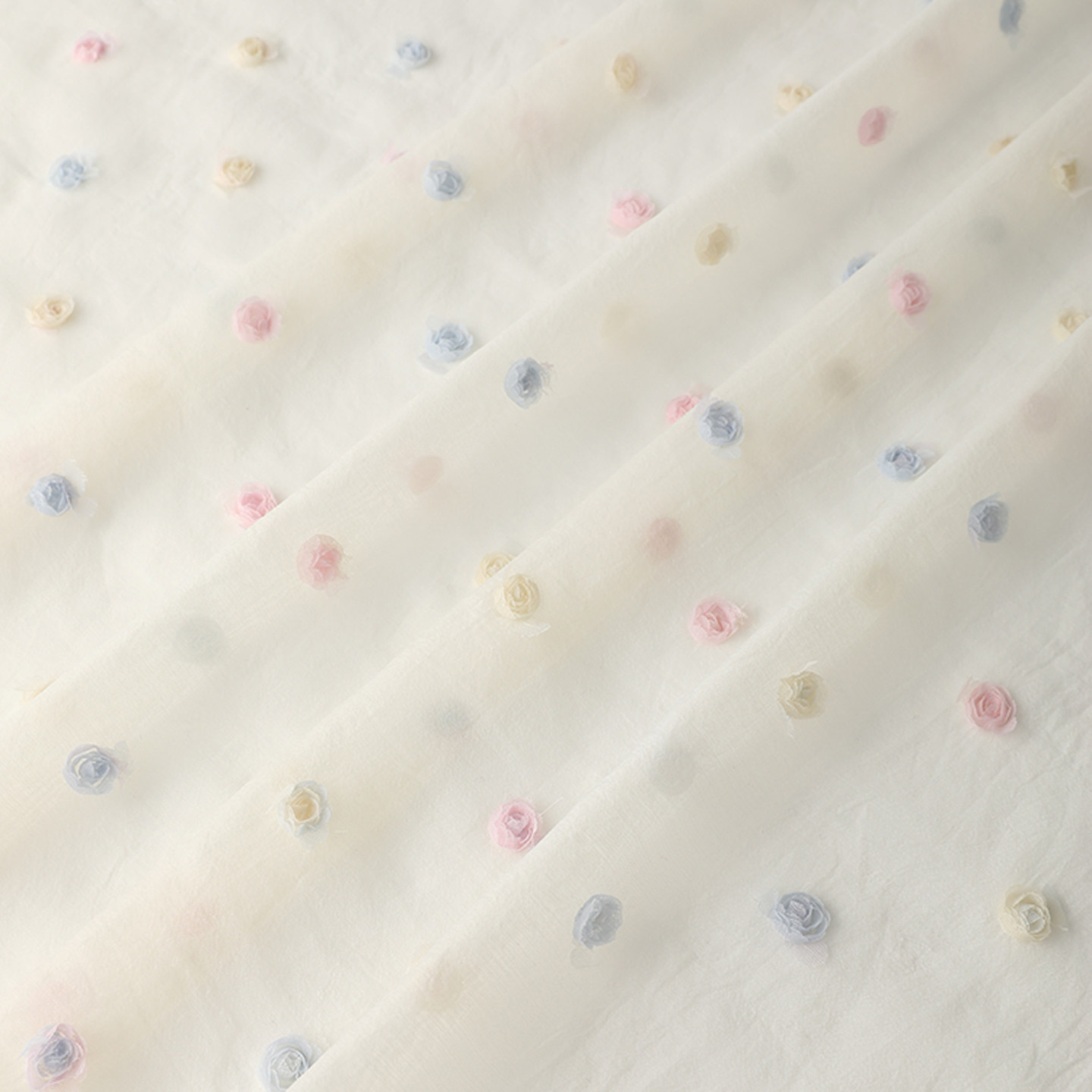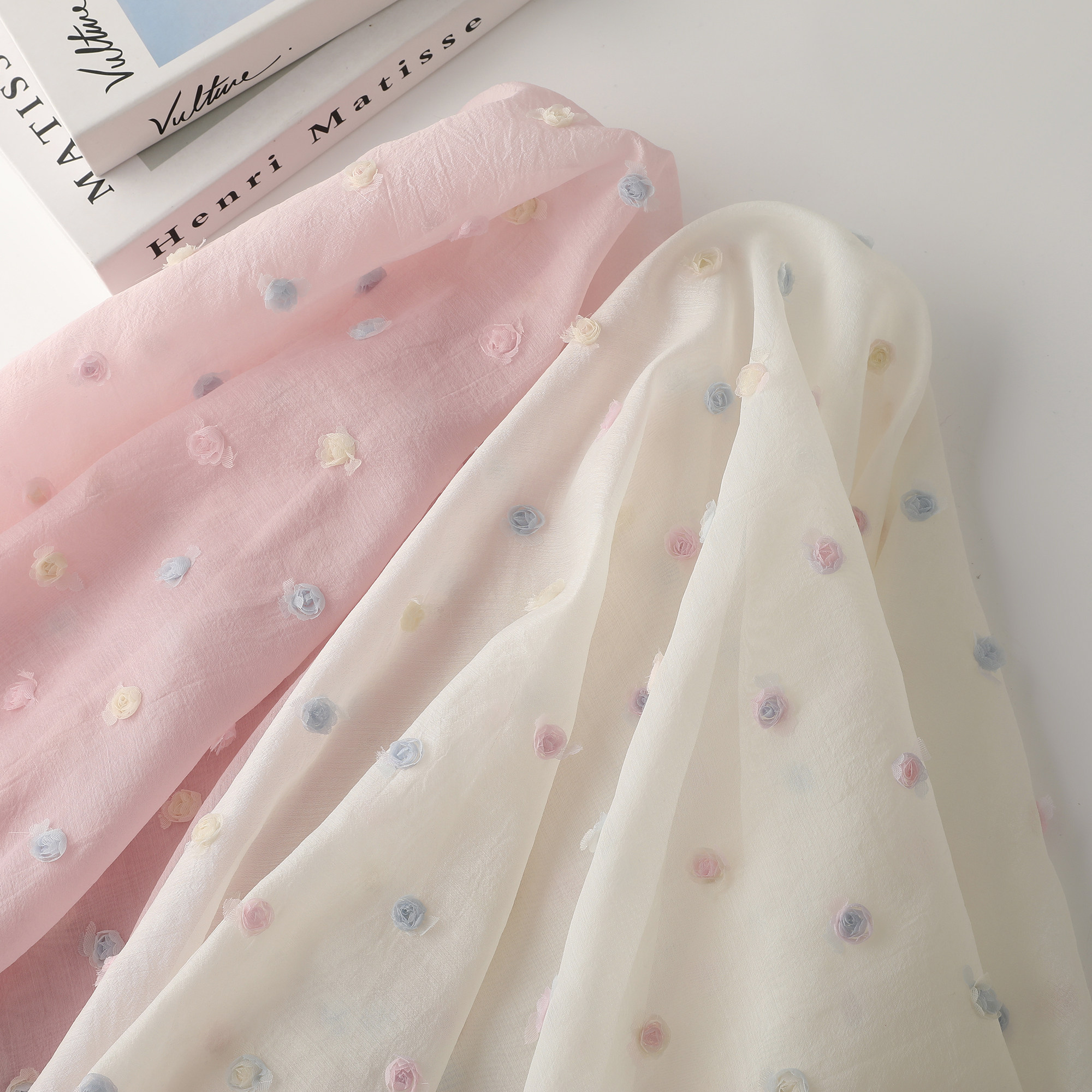 📚 春夏撞色小玫瑰花盘花刺绣雪纺纱面料裙装童装手工diy服装面料