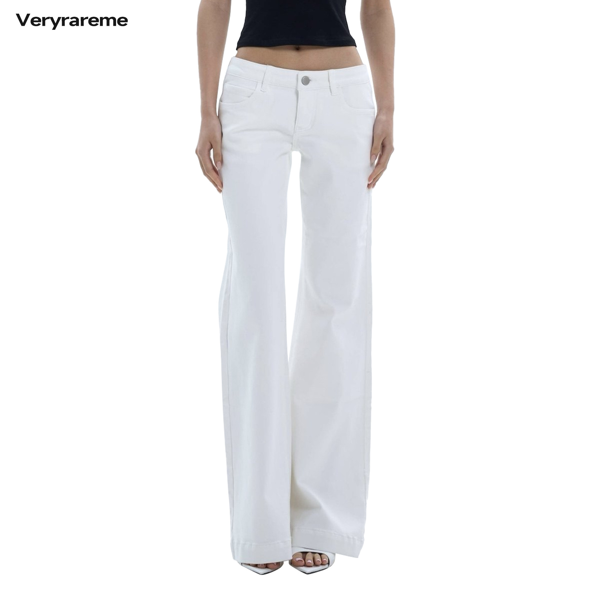 📚 Veryrareme 低腰复古直筒白色牛仔裤女