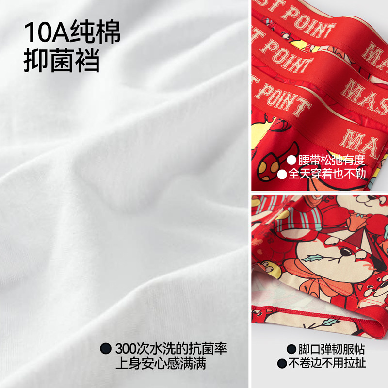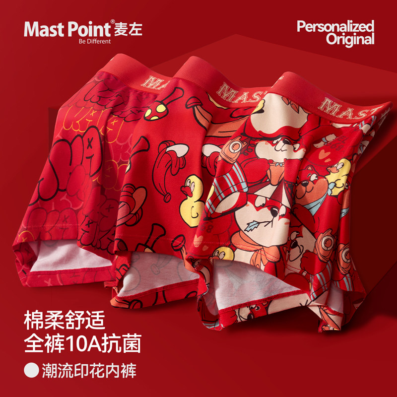 📚 麦左男士内裤纯棉裆红色本命年四角2026属马年新年礼物结婚平角裤