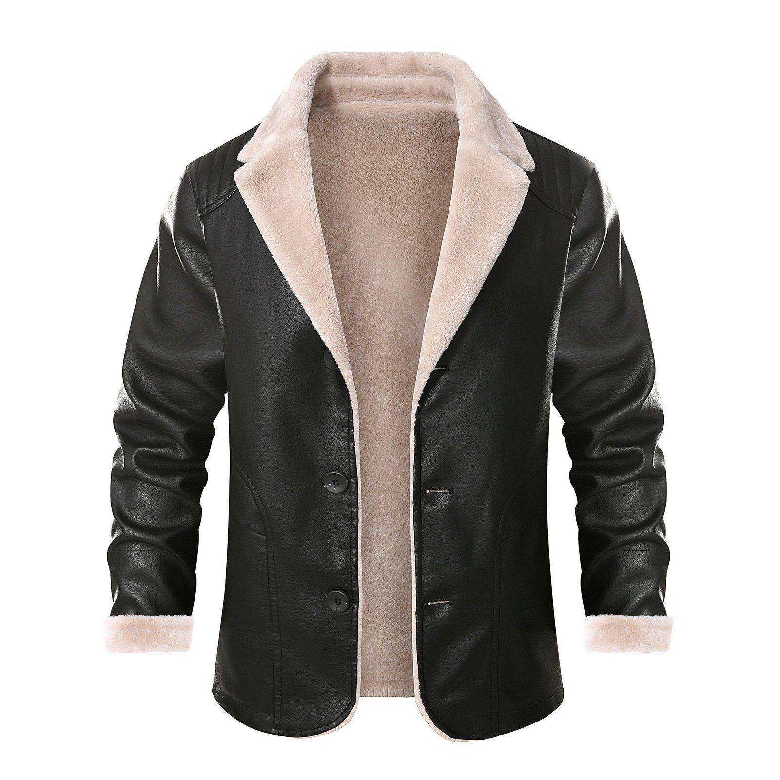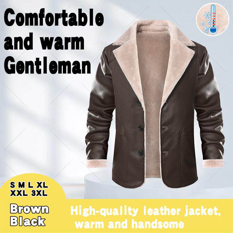 📚 中长款大码真皮皮衣男款秋冬季皮毛一体夹克大衣加绒加厚风衣外套