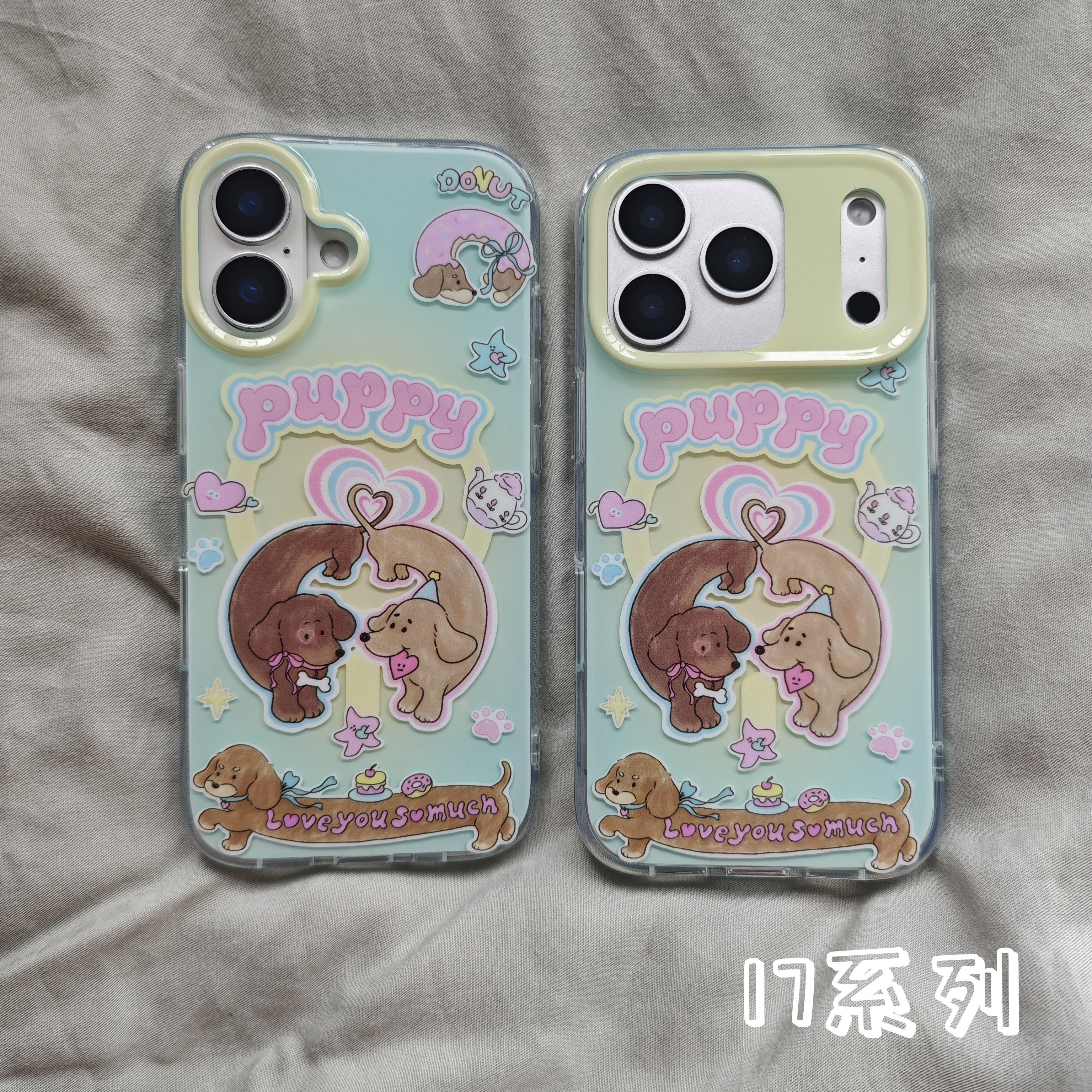 📚 新薄荷绿爱心腊肠狗可爱趣味个性imd磁吸17手机壳适用iphone16promax大孔防摔亮面苹果15情侣14小众支架13
