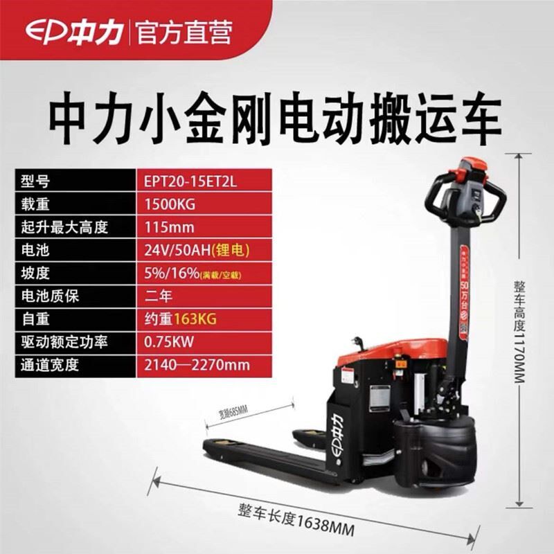 📚 中力锂电池全电动叉车2吨中立托盘搬运车1.5T小金刚2代地牛拖车