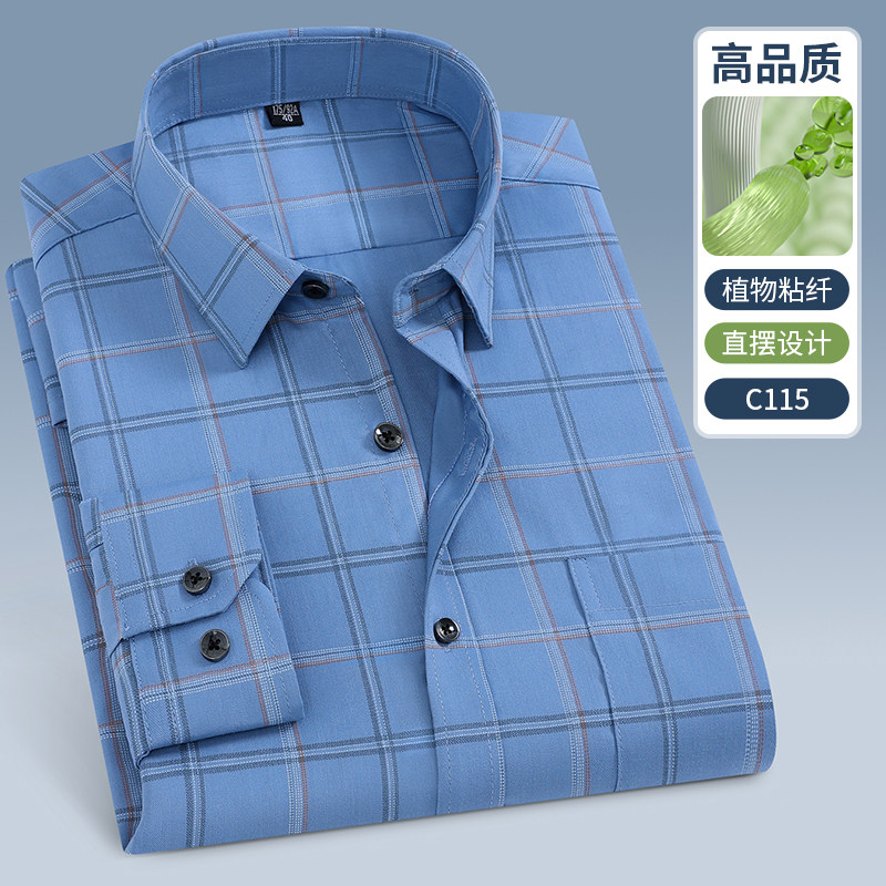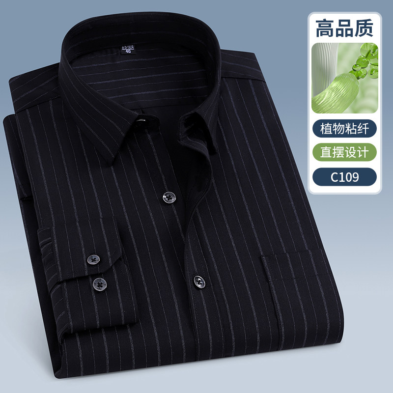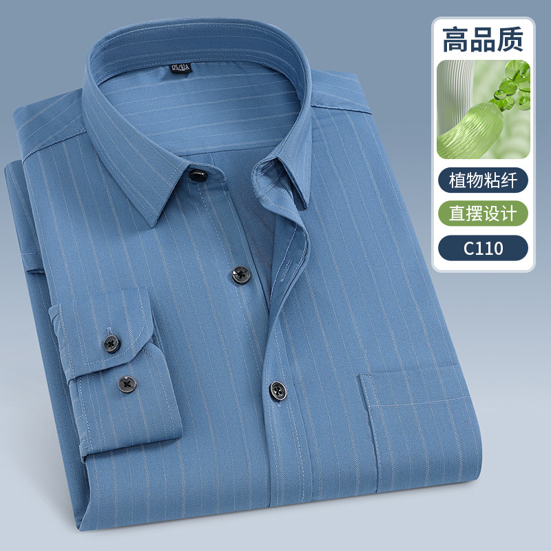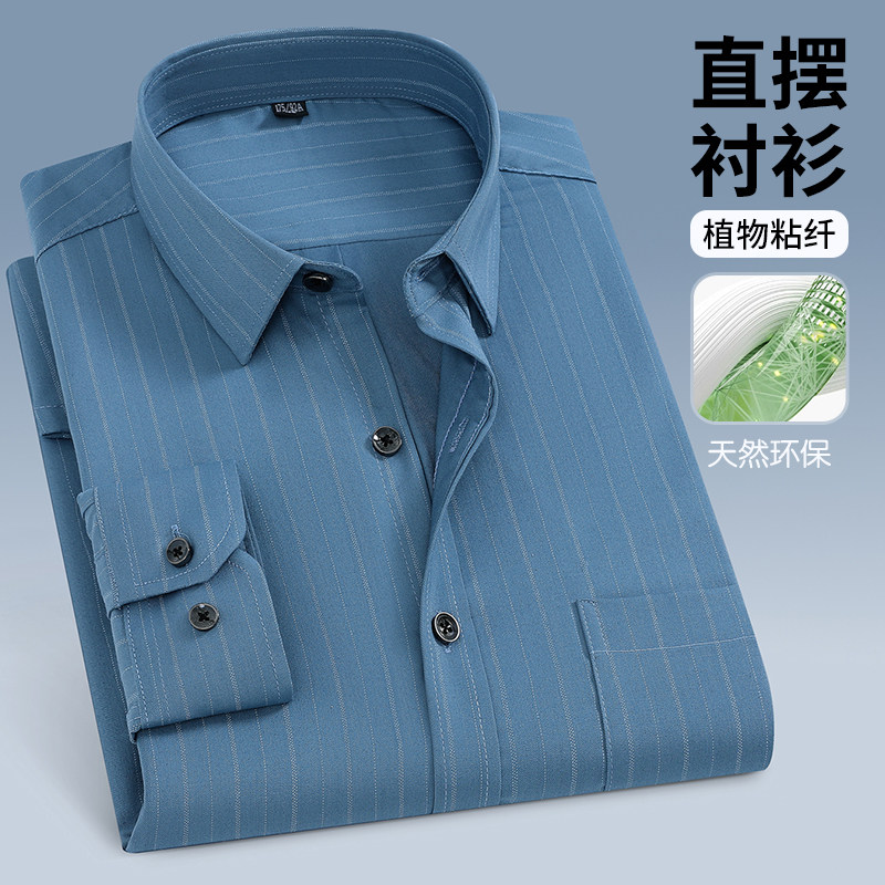 📚 春秋季中老年衬衫男长袖条纹宽松免烫弹力直摆休闲衬衣中年爸爸装