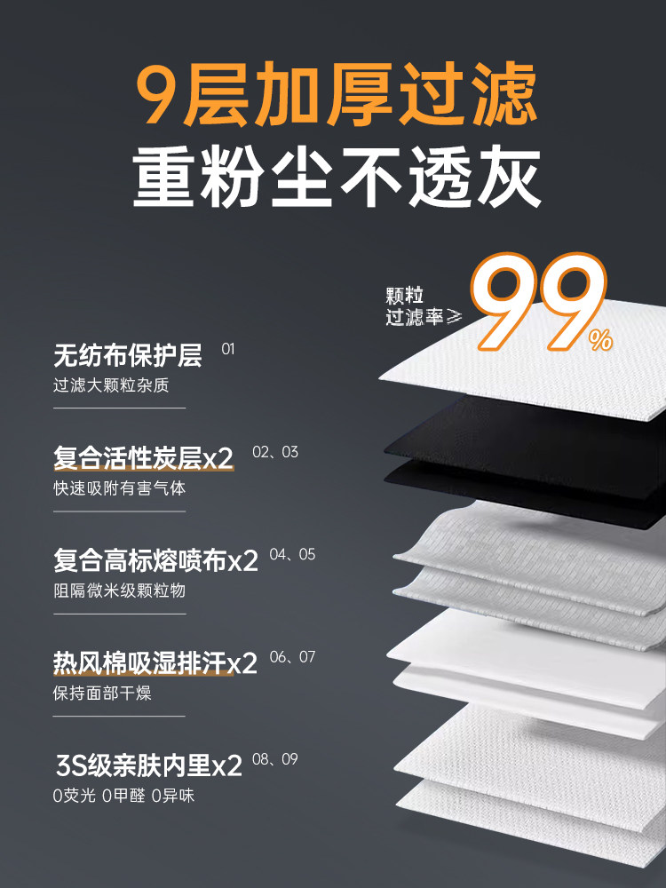 📚 防尘专用口罩kn95防工业重度粉尘防尘肺kp95活性炭防甲醛焊工油漆