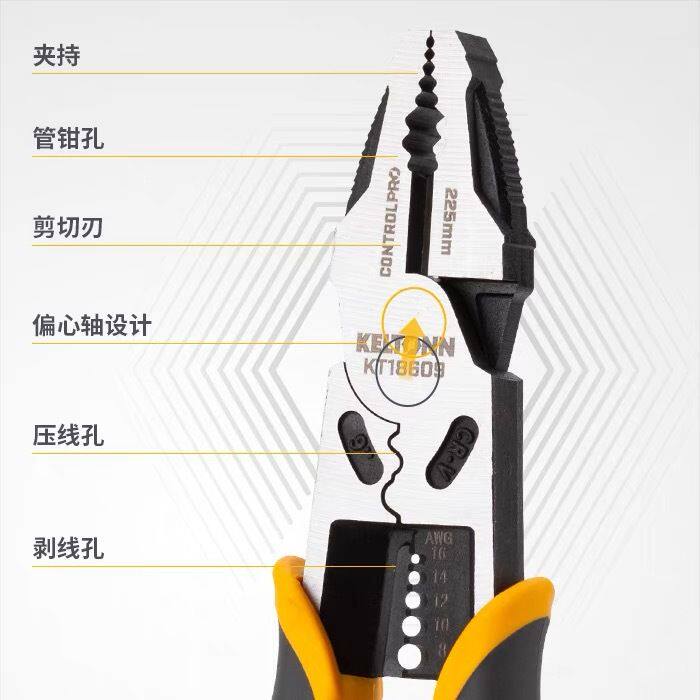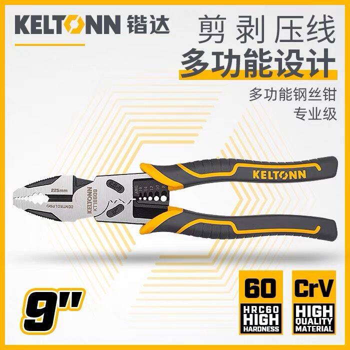 📚 锴达工具多功能钢丝钳老虎钳电工9寸剥线钳工业级多用剪钳KT18609