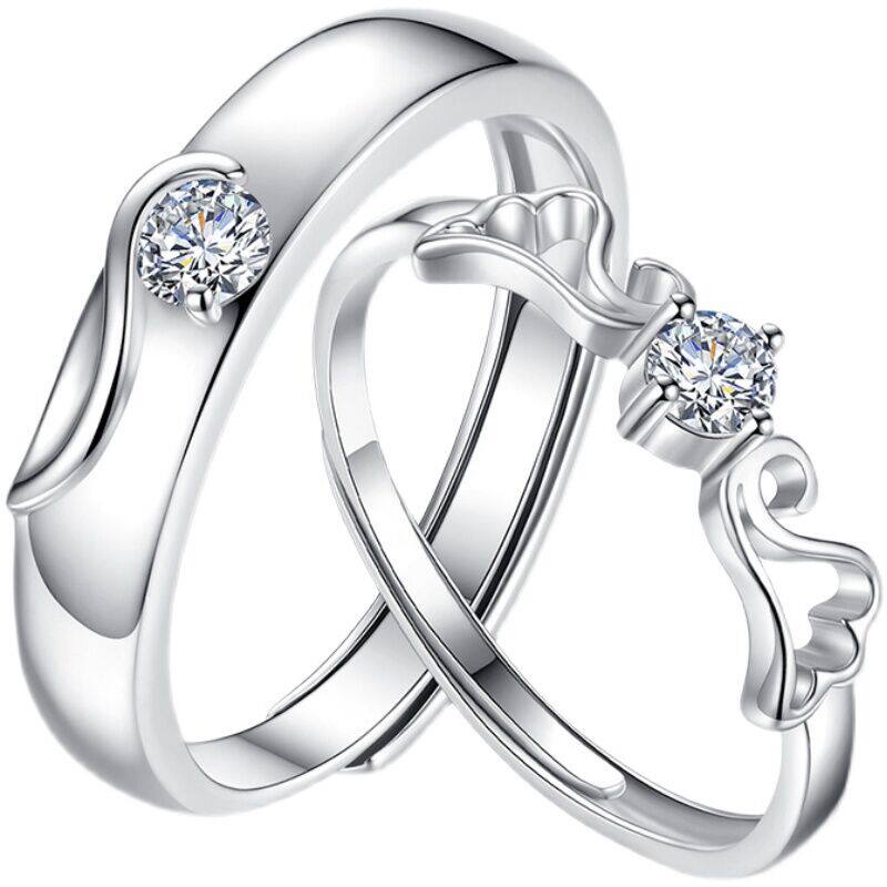 📚 情侣戒指纯银男女一对天使之翼韩版开口对戒情人节新年礼物送女友