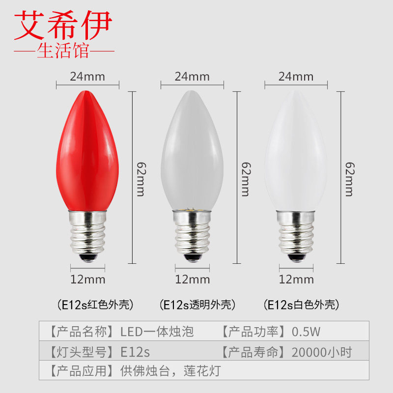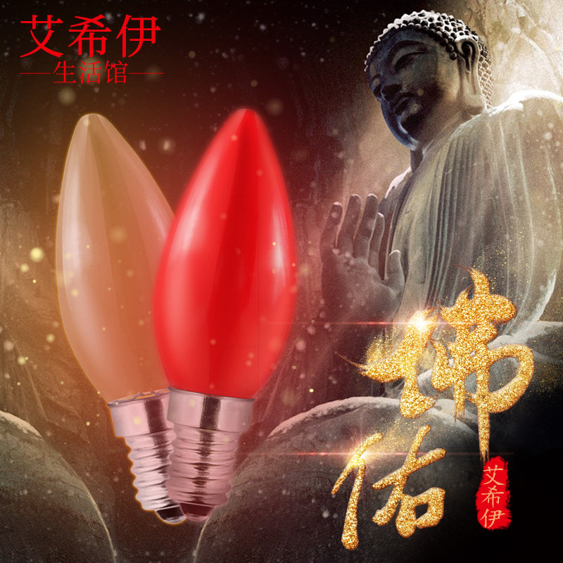 📚 LED财神灯泡小螺口e12节能透明白色暖色蜡烛供佛灯红色莲花灯泡