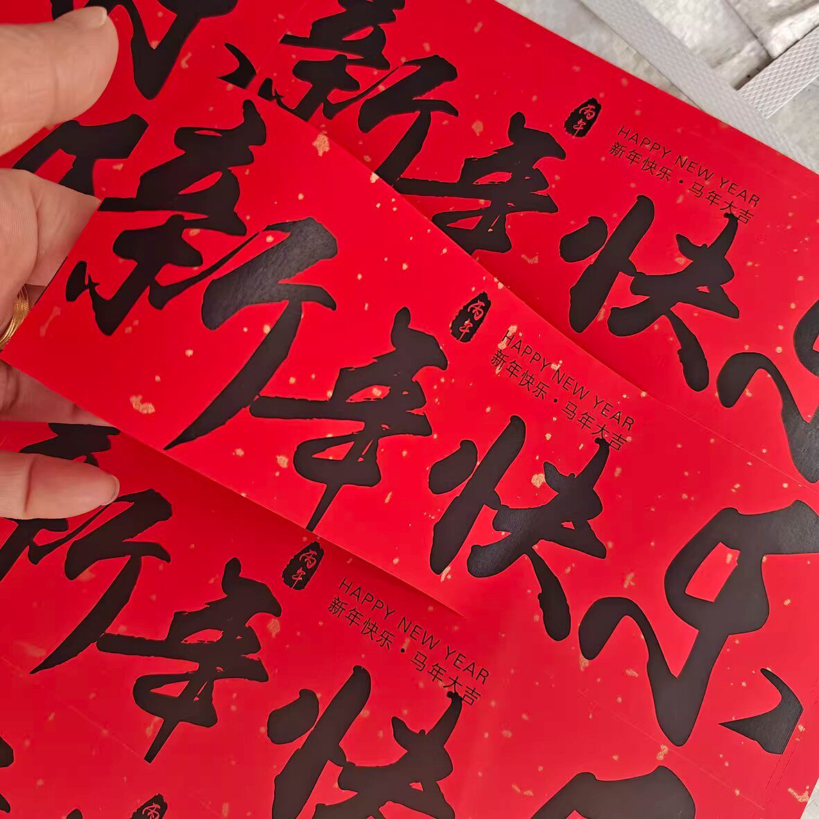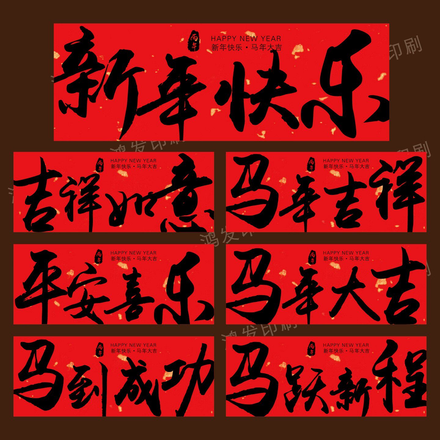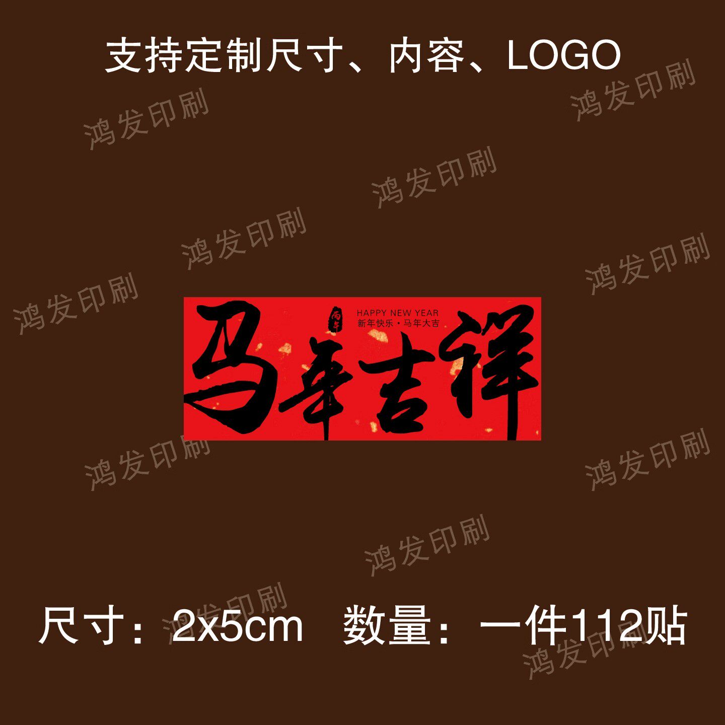 📚 新年快乐不干胶标签红色书法字体春节祝福礼盒包装封口贴纸可定制