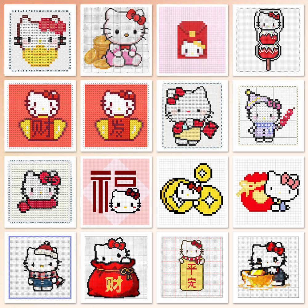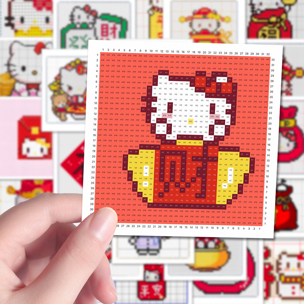 📚 96贴凯蒂猫新年拼豆图纸可爱祝福贴创意像素风凯特猫贴画手工装饰