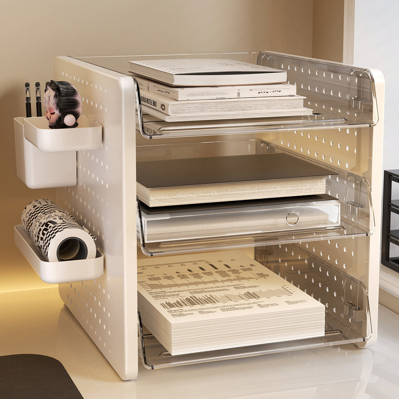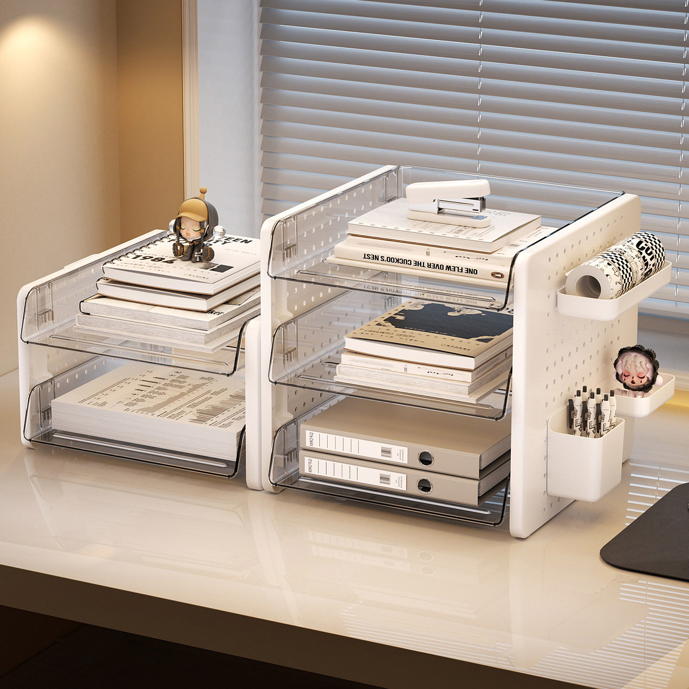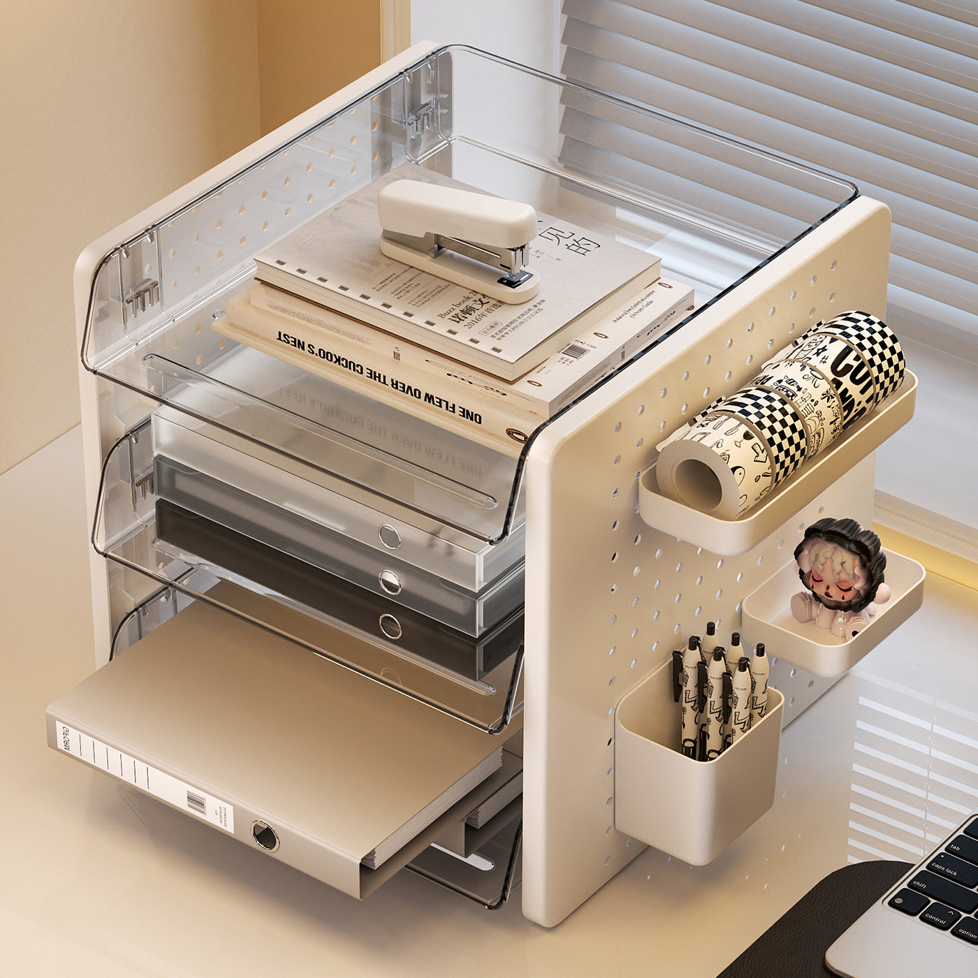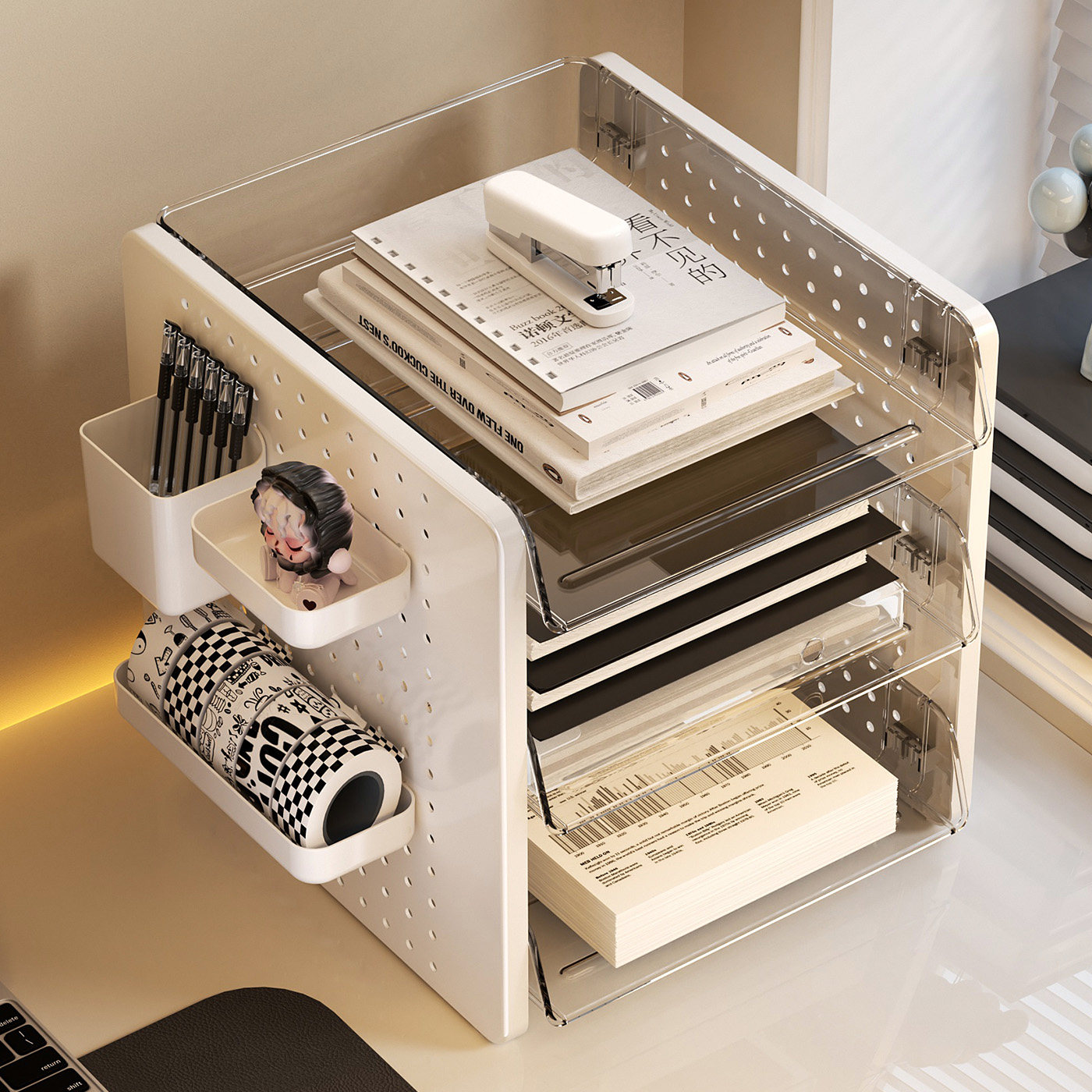 📚 洞洞板桌面文件收纳架办公室工位改造神器学习书桌上多层整理盒
