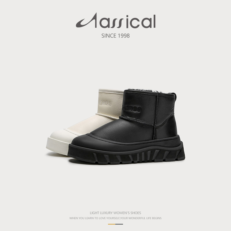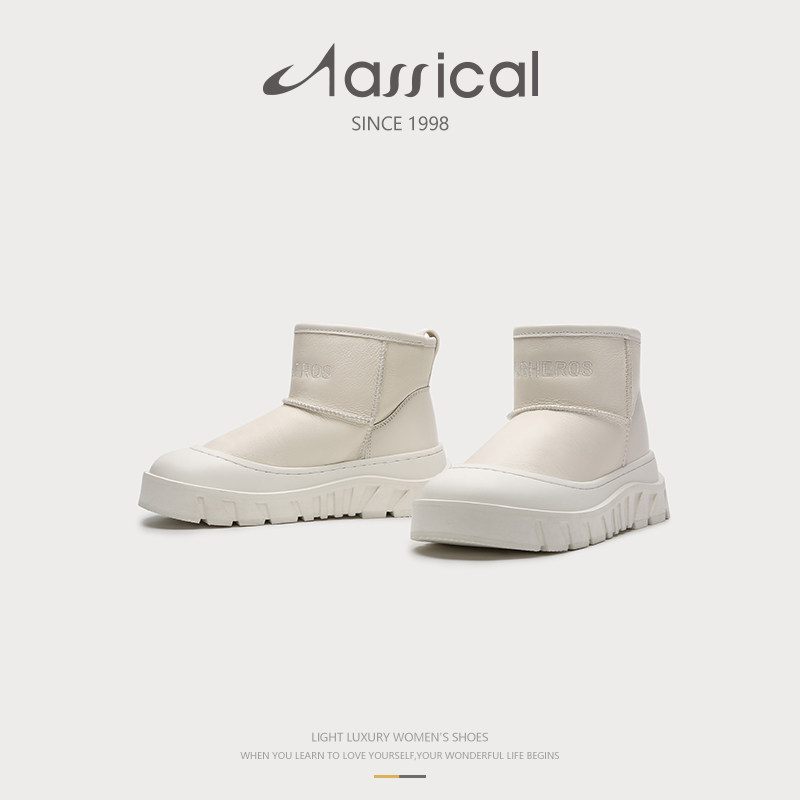 📚 卡斯高冬羊皮毛一体保暖平底雪地靴一脚蹬短靴女鞋