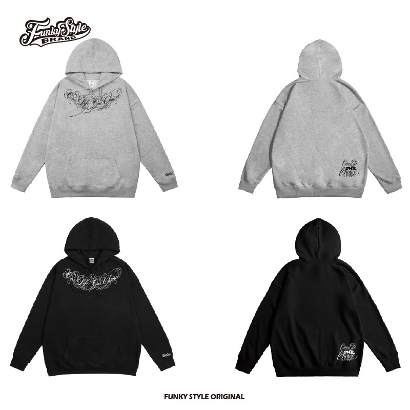 📚 FUNKYSTYLE嘻哈加厚加绒纹身师风格oldschool美式花体字连帽卫衣