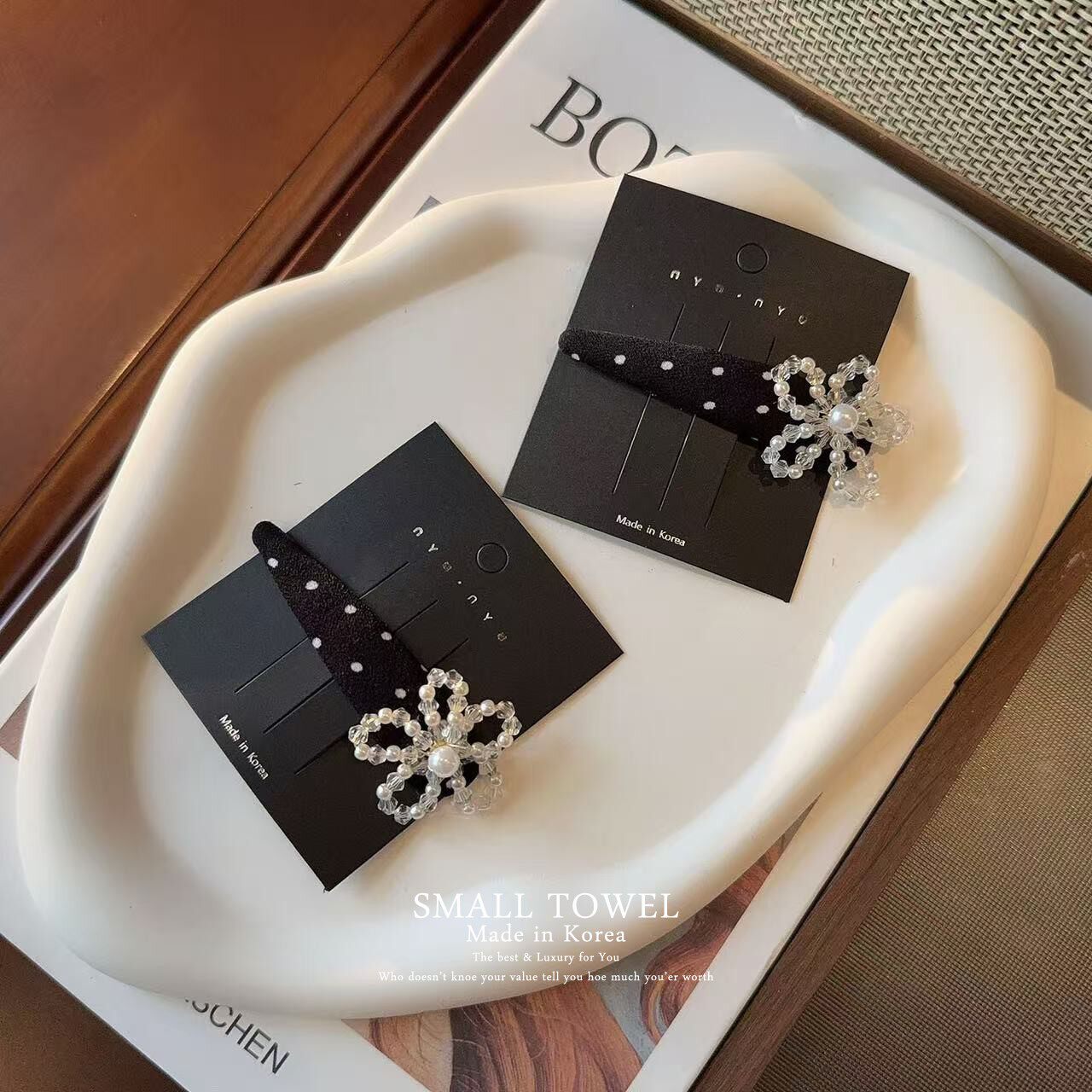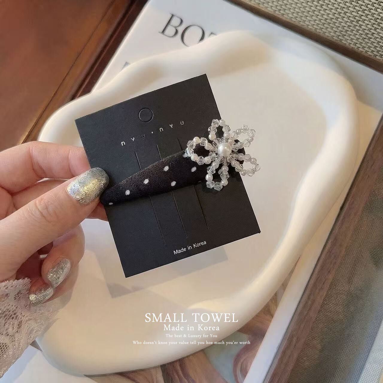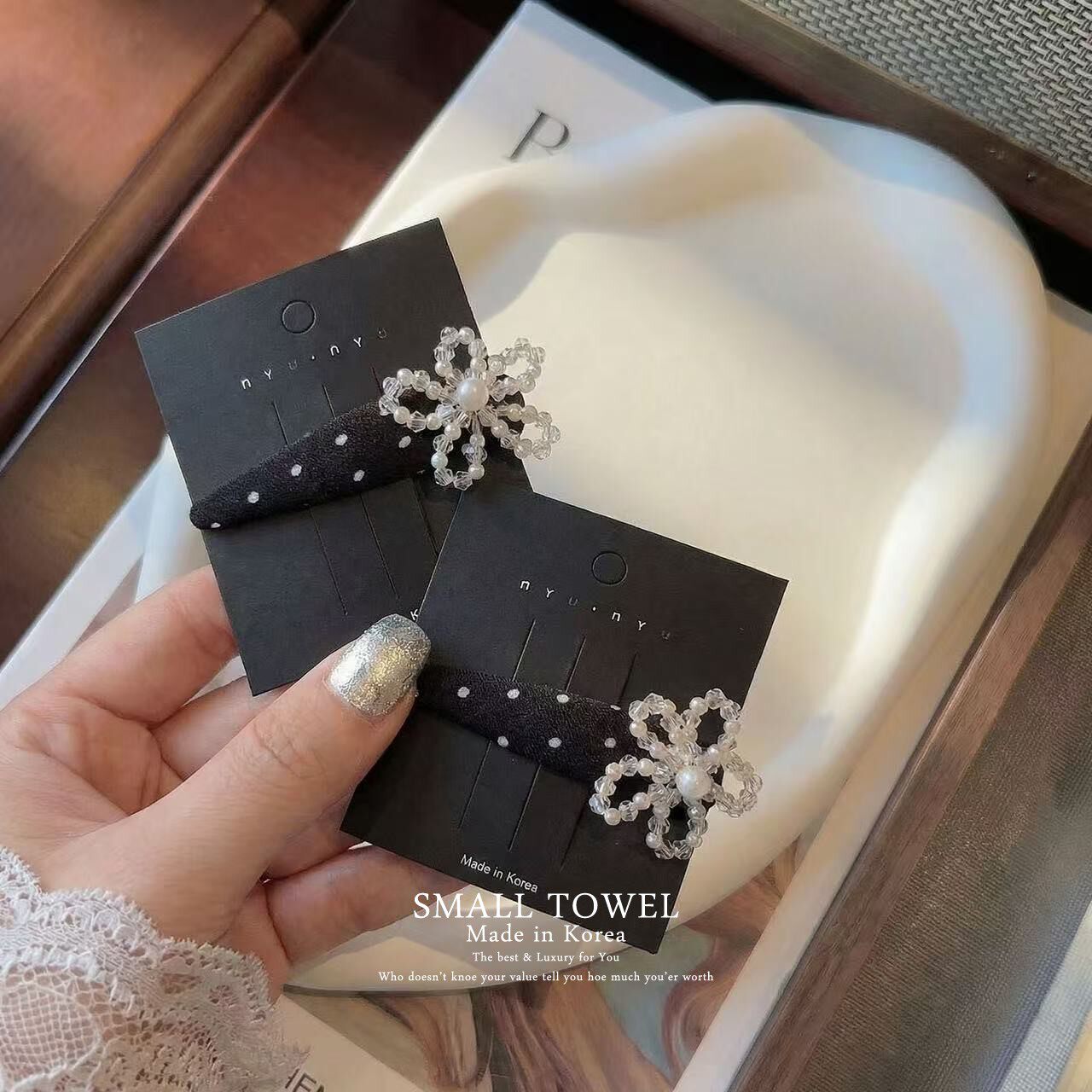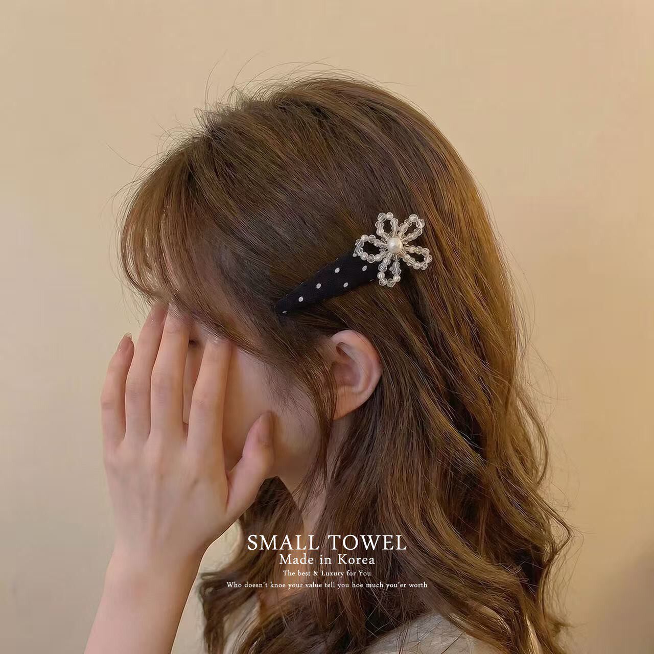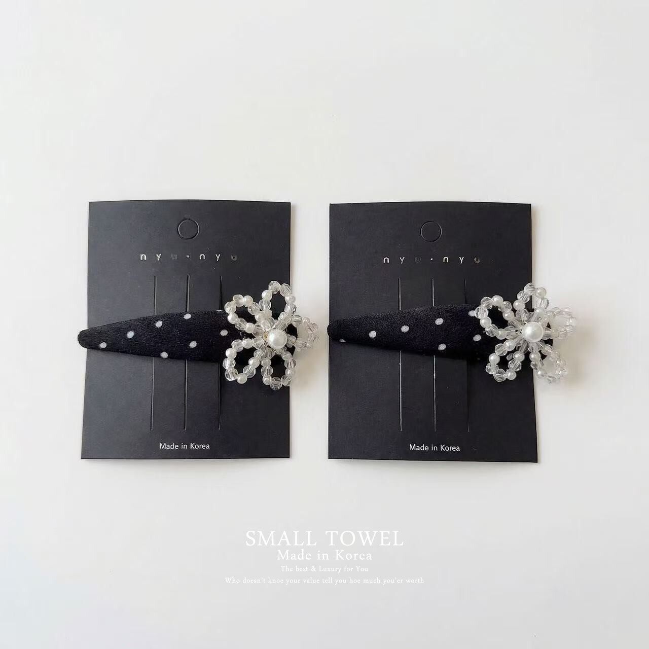 📚 韩国进口新款nyu高级法式串珠花朵侧边夹bb夹刘海碎发夹发卡发饰