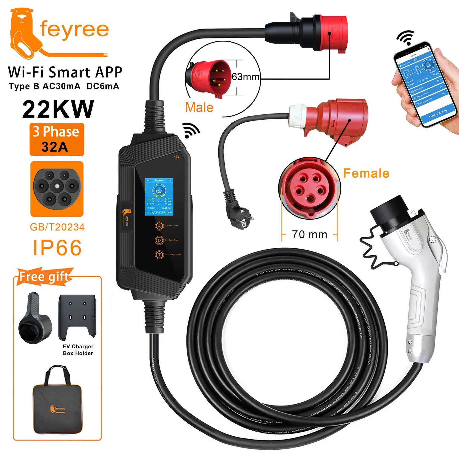 📚 家用便携式随车充22kw带APP新能源电动汽车国标充电桩