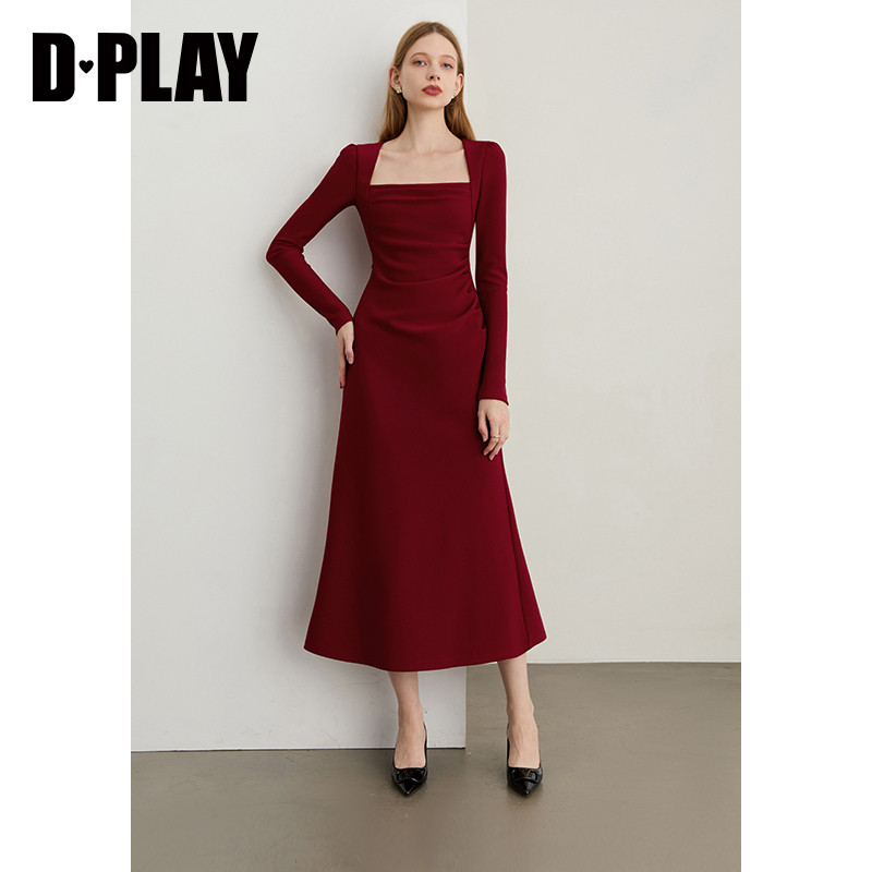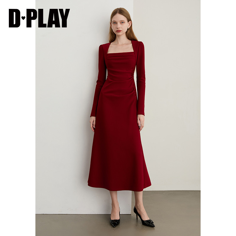 📚 DPLAY【蜜恋衣橱系列】2026春季新款红色连衣裙女礼服裙子敬酒服
