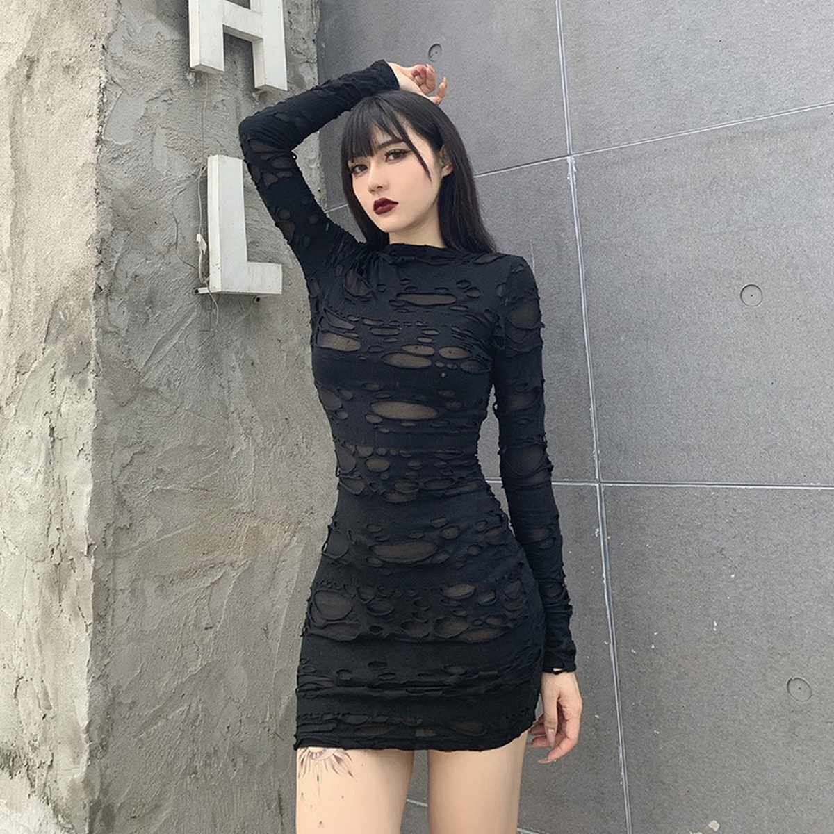 📚 Helisopus New Gothic Black Mini Dress Streetwear Rock Punk H