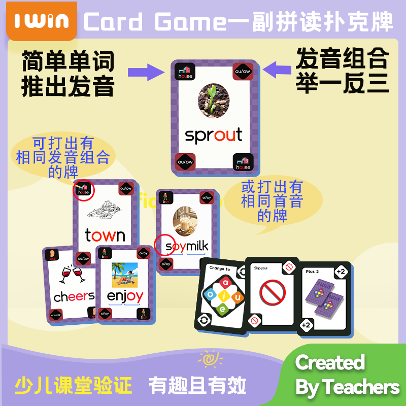 📚 I Win北美原版英语自然拼读扑克牌双元音多元音配对游戏CVC带教学