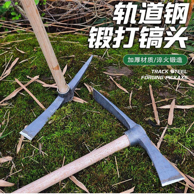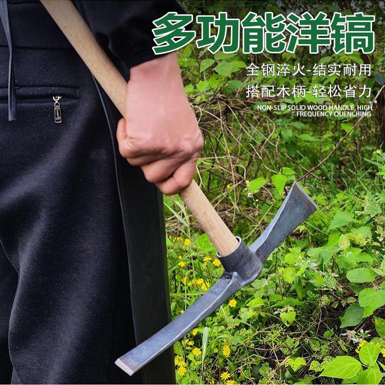 📚 洋镐户外抢险防汛十字镐铁镐木柄羊镐鹤嘴镐挖笋开荒挖树桩锰钢镐