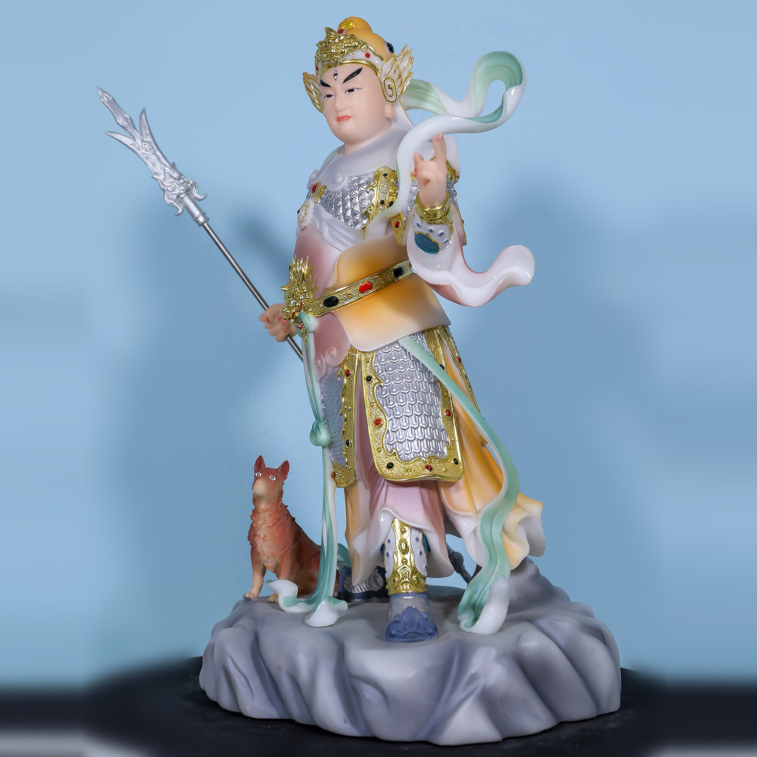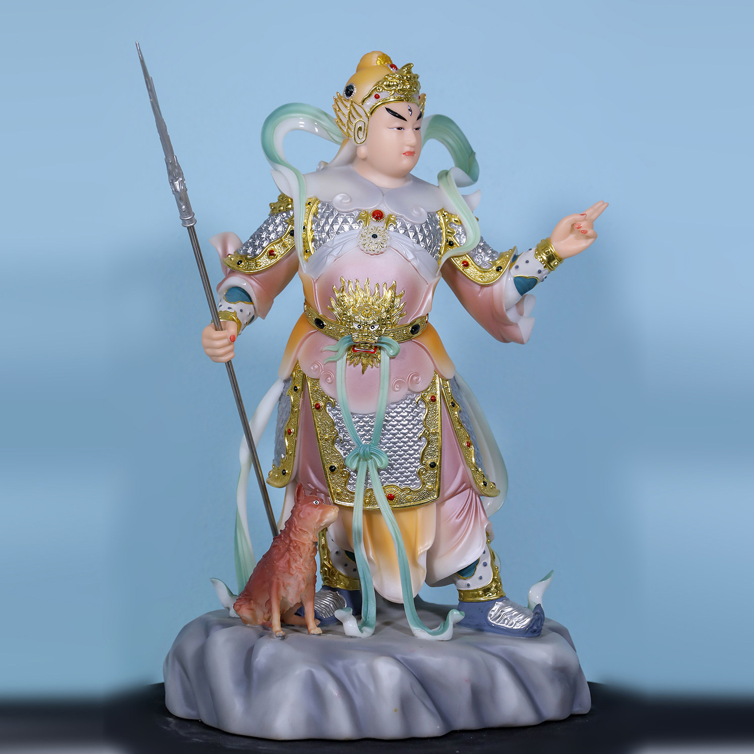 📚 二郎神杨戬神像灌口二郎真君哮天犬天神汉白玉佛堂显圣真君像摆件