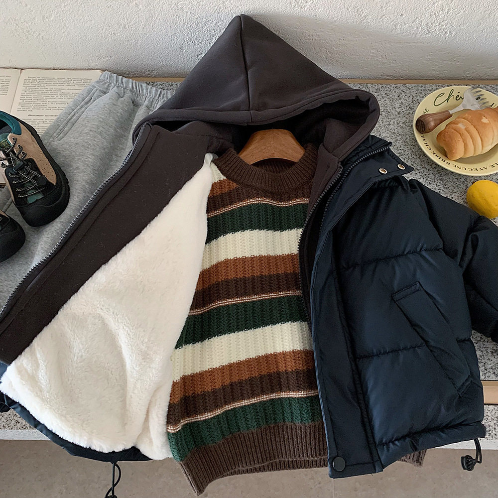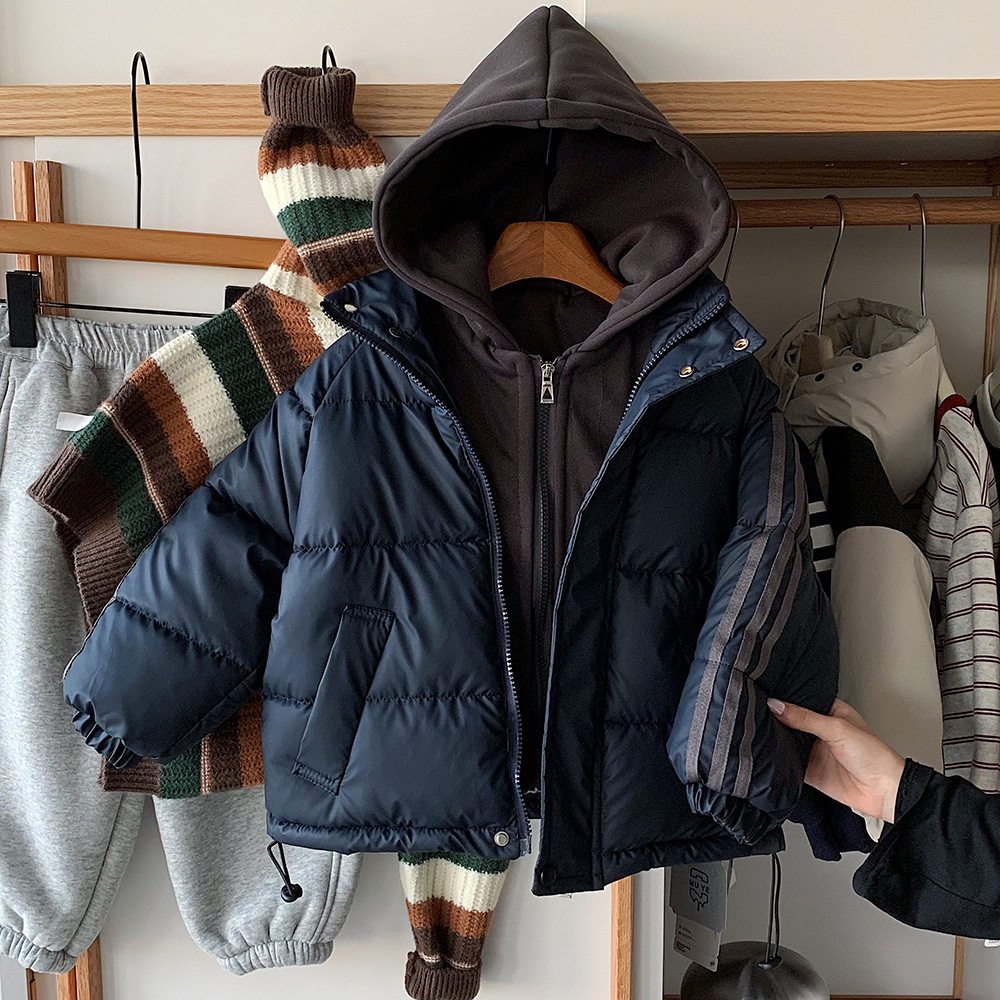 📚 木野冬季儿童棉服湖州织里童装男童韩版加厚保暖连帽假两件派克服
