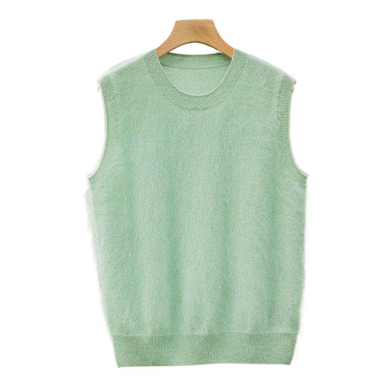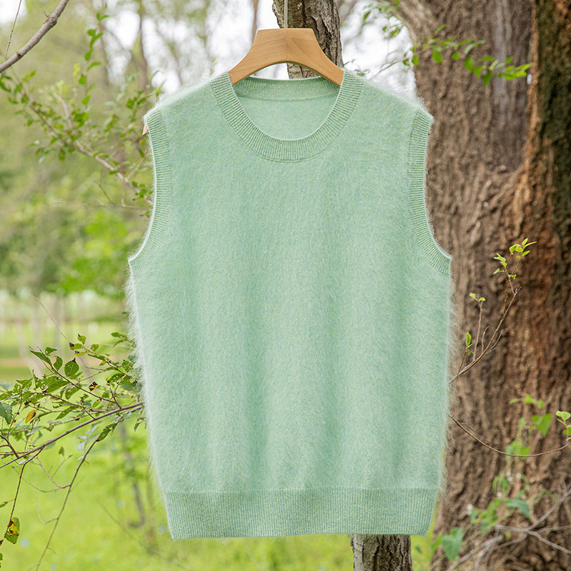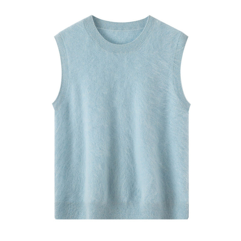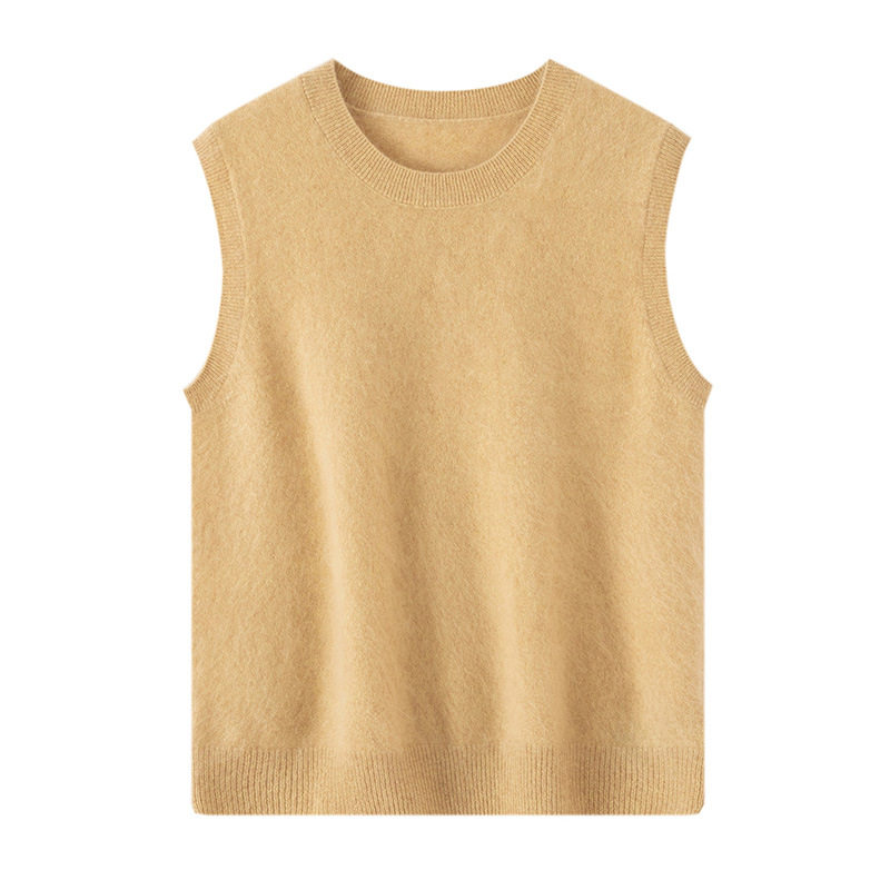 📚 特调色系 拉绒100纯山羊绒拉绒花纱马甲圆领背心套头针织衫女