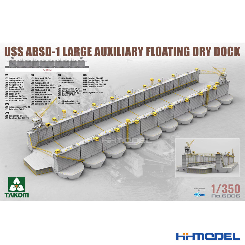 📚 恒辉 三花TAKOM 6006 1/350 ABSD-1大型辅助浮式干船坞 拼装模型