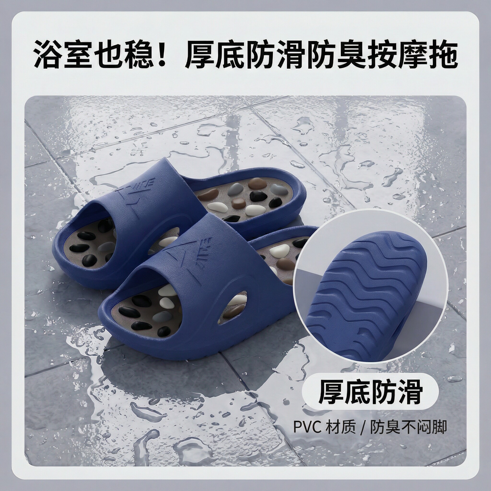📚 按摩拖鞋男士居家室内防滑防臭浴室指压板鹅卵石足底养生穴位凉拖