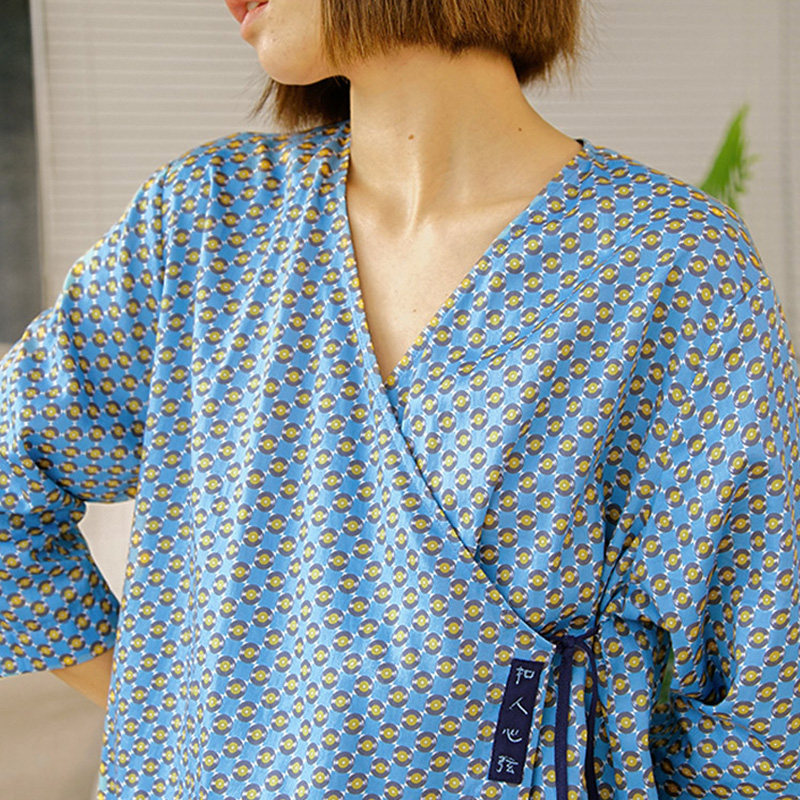 📚 朵朵可可春古风睡衣女中国风汉服蓝色碎花缎面纯棉日式和服家居服