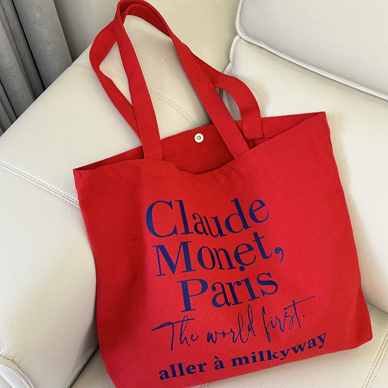 📚 韩国ins博主同款红色帆布包包女时尚大容量通勤百搭单肩包托特包